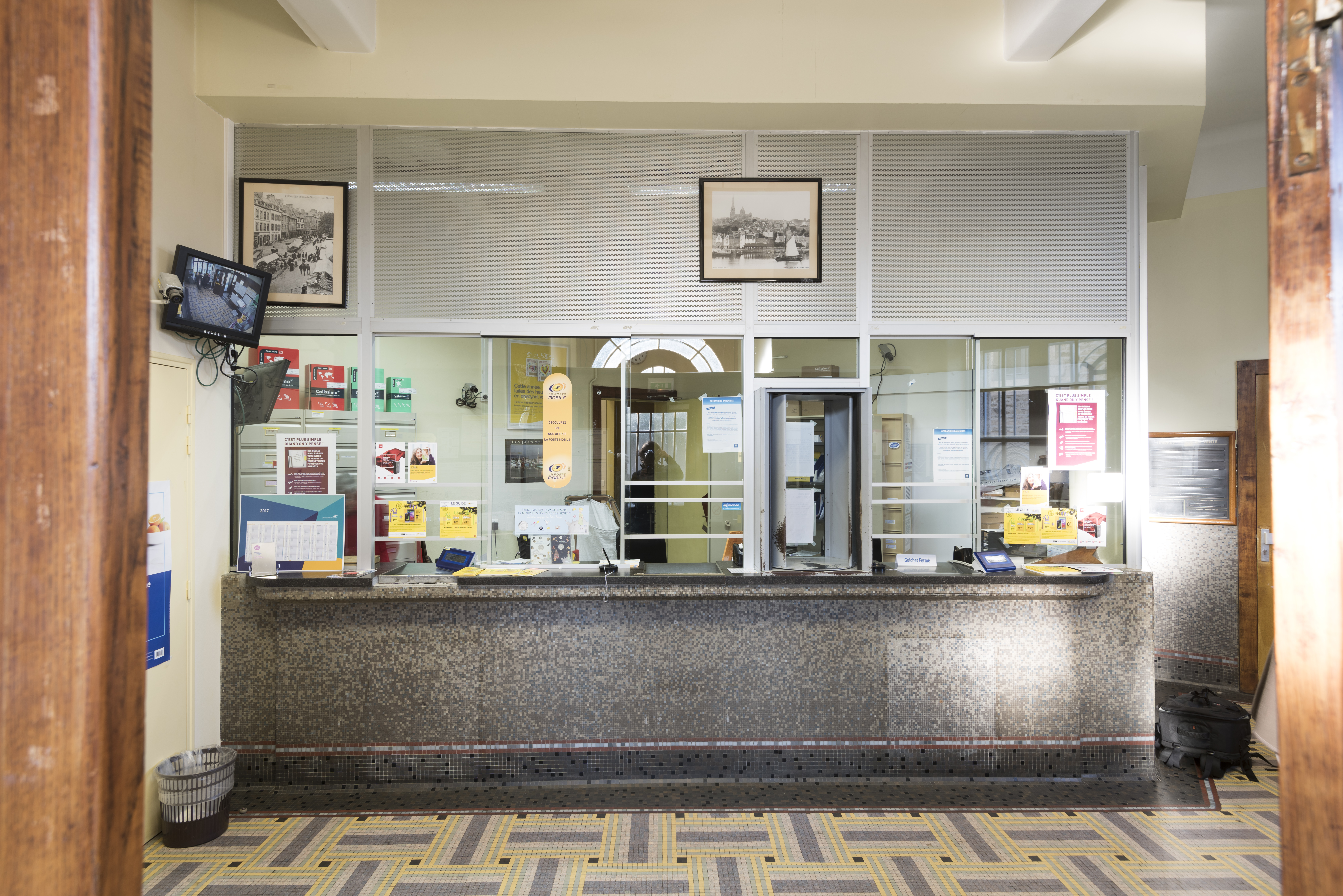 Guichet. Partie inférieure ornée de mosaïques. Vue généraleImmatriculation