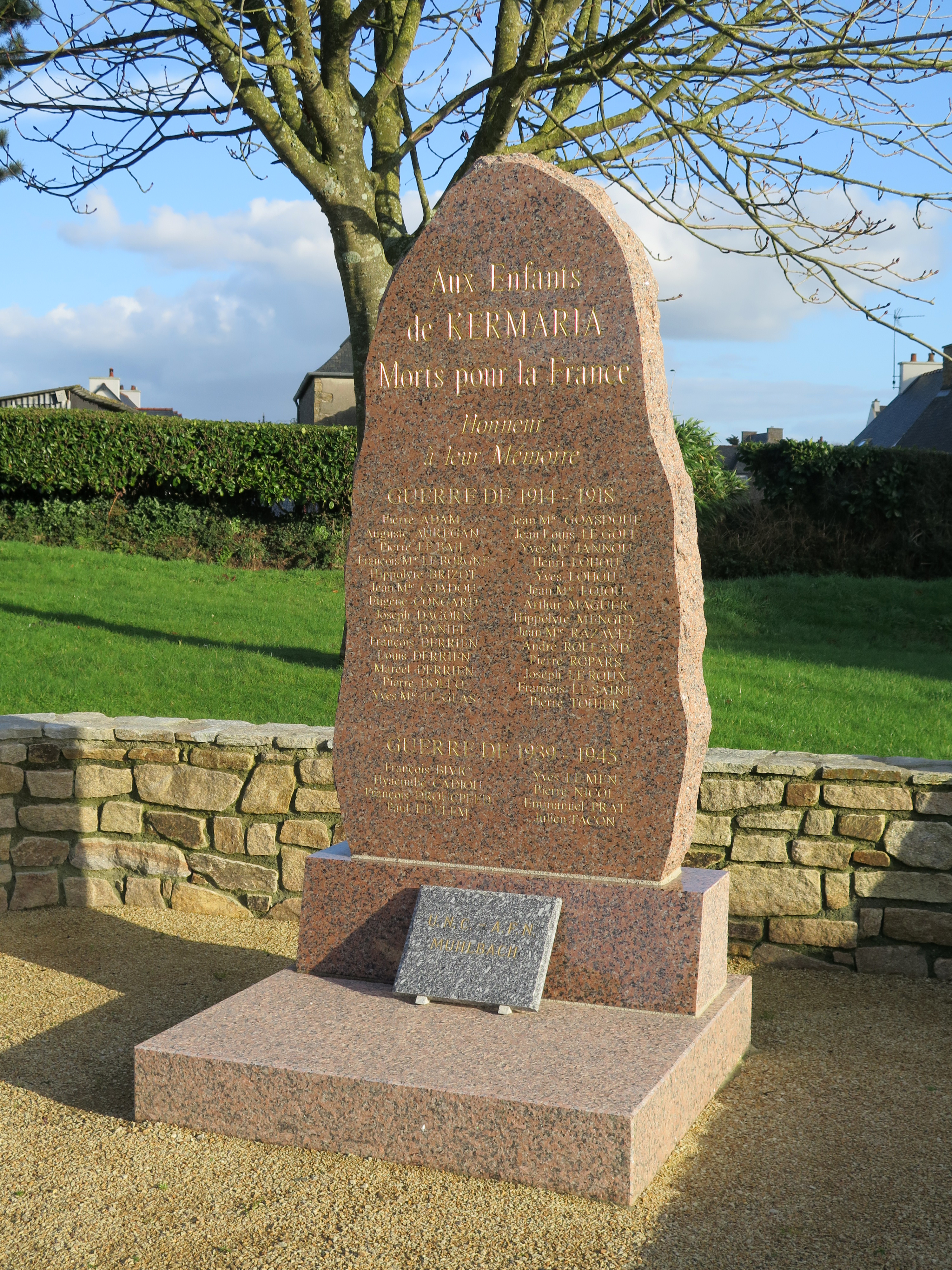 Kermaria-Sulard, le bourg : monument aux morts, détail de la stèleImmatriculation