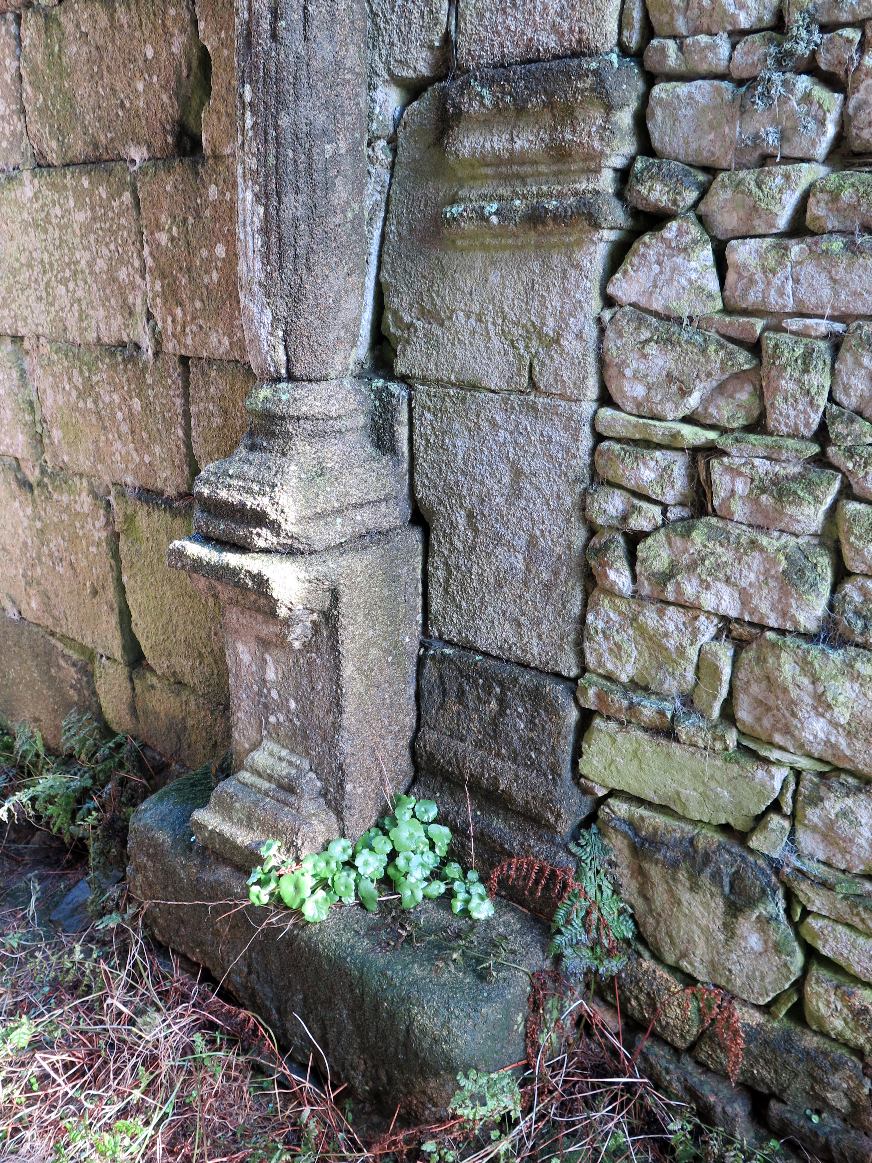 Kermaria-Sulard : chapelle de Kerleau, élévation ouest, entrée surmontée d'un fronton triangulaire et encadrée par deux colonnes (l'une d'entre elles a disparu)Immatriculation