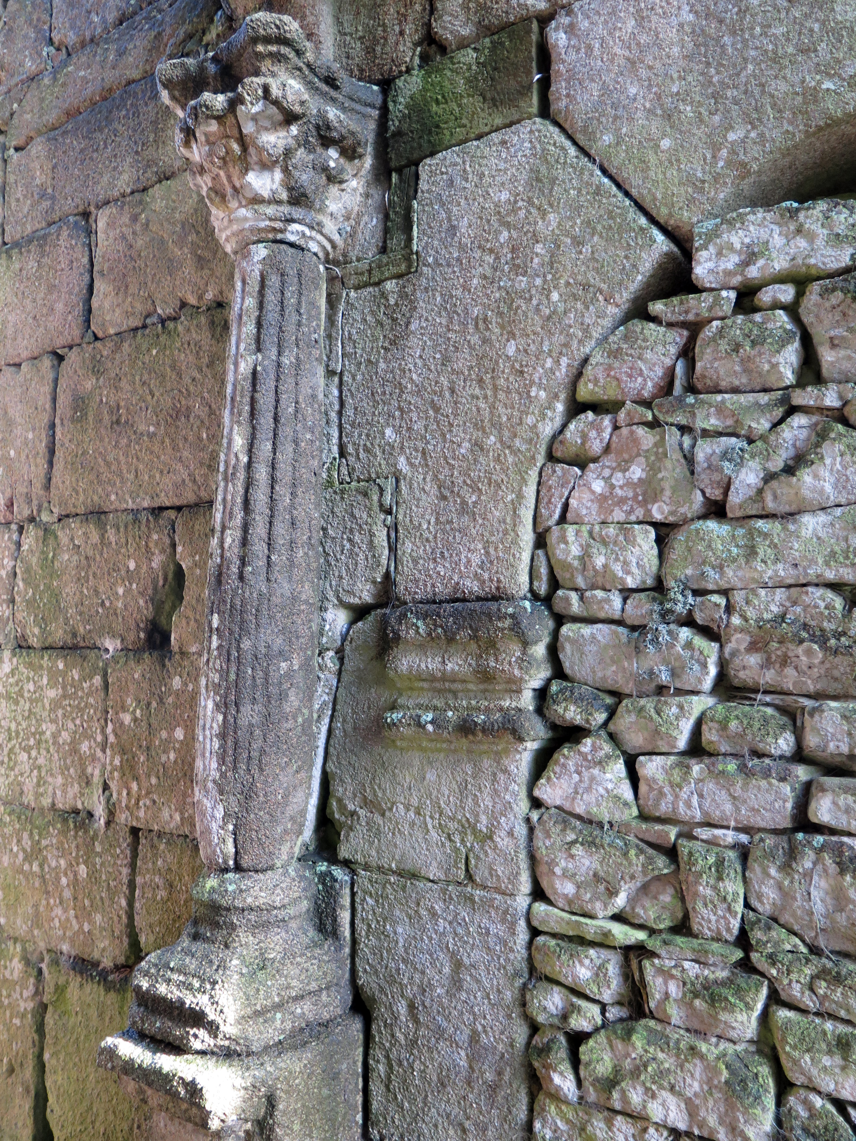 Kermaria-Sulard : chapelle de Kerleau, élévation ouest, entrée surmontée d'un fronton triangulaire et encadrée par deux colonnes (l'une d'entre elles a disparu)Immatriculation