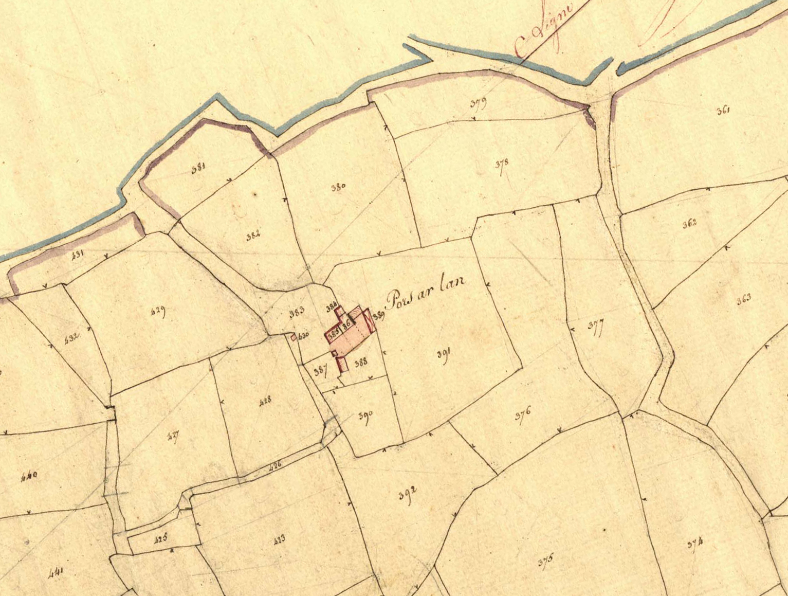 Extrait du cadastre ancien de la commune de Rospez, 1826 : Pors ar Lan [Porz ar Lann]Immatriculation