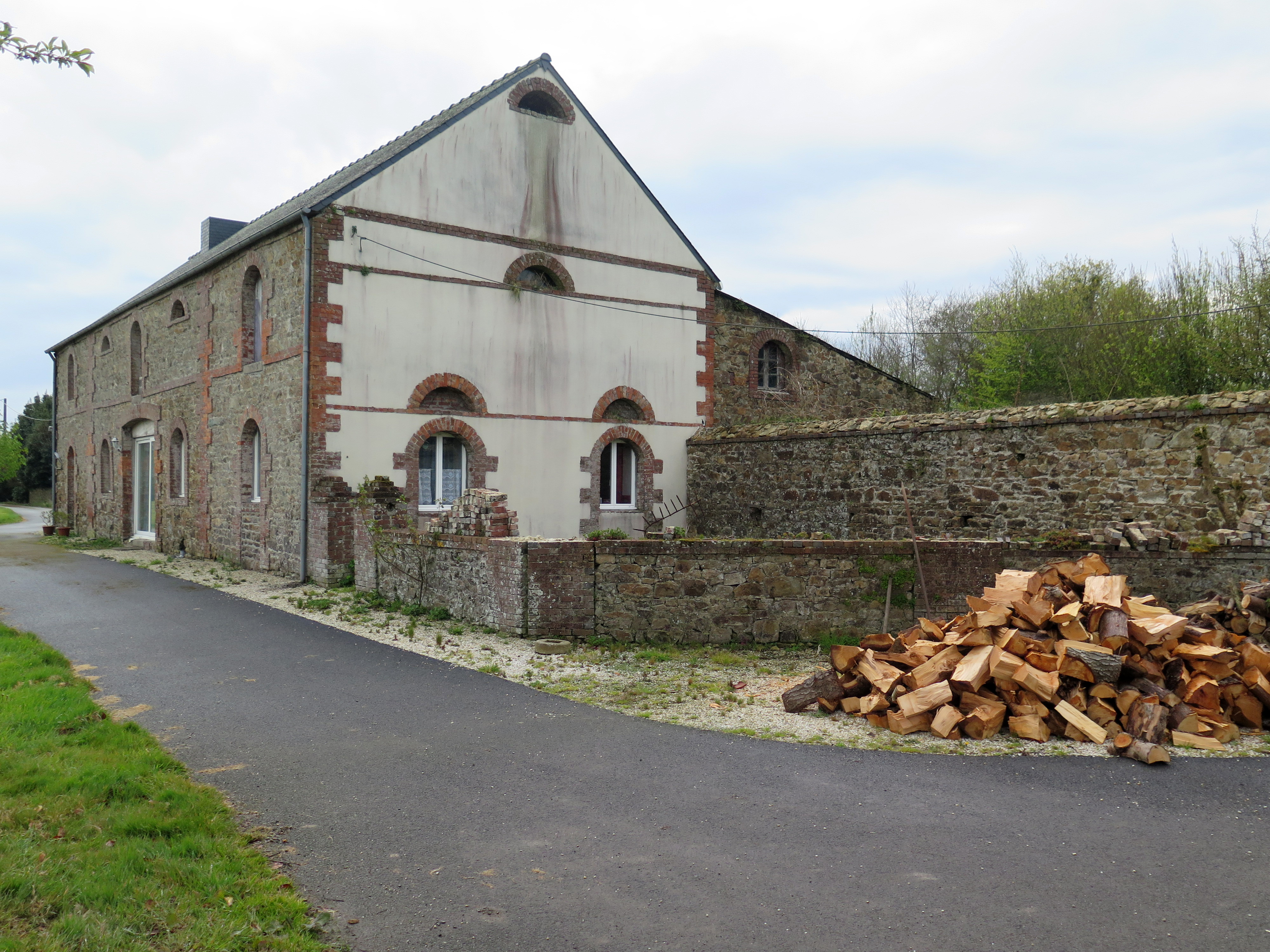 Kermaria-Sulard, Kergoff : écurie modèle de l'ancien château (seconde moitié du 19e siècle). Au centre : la grange - remise. L'édifice a gardé une partie de son enduit protecteurImmatriculation