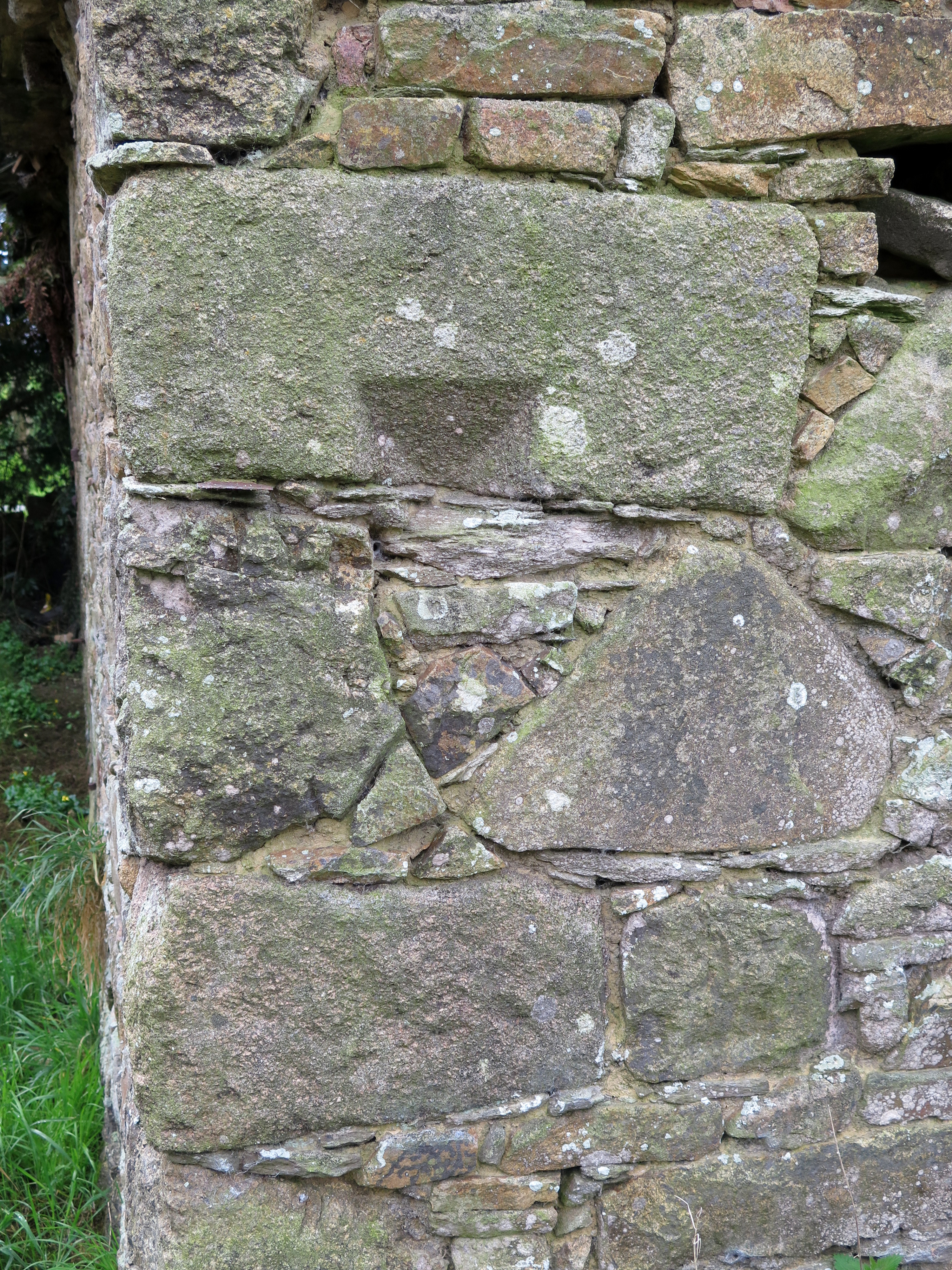 Kermaria-Sulard, Kergoff : dépendance, détail du pignon, pierre de remploi (ancienne ouverture de tir datable du 16e siècle)Immatriculation