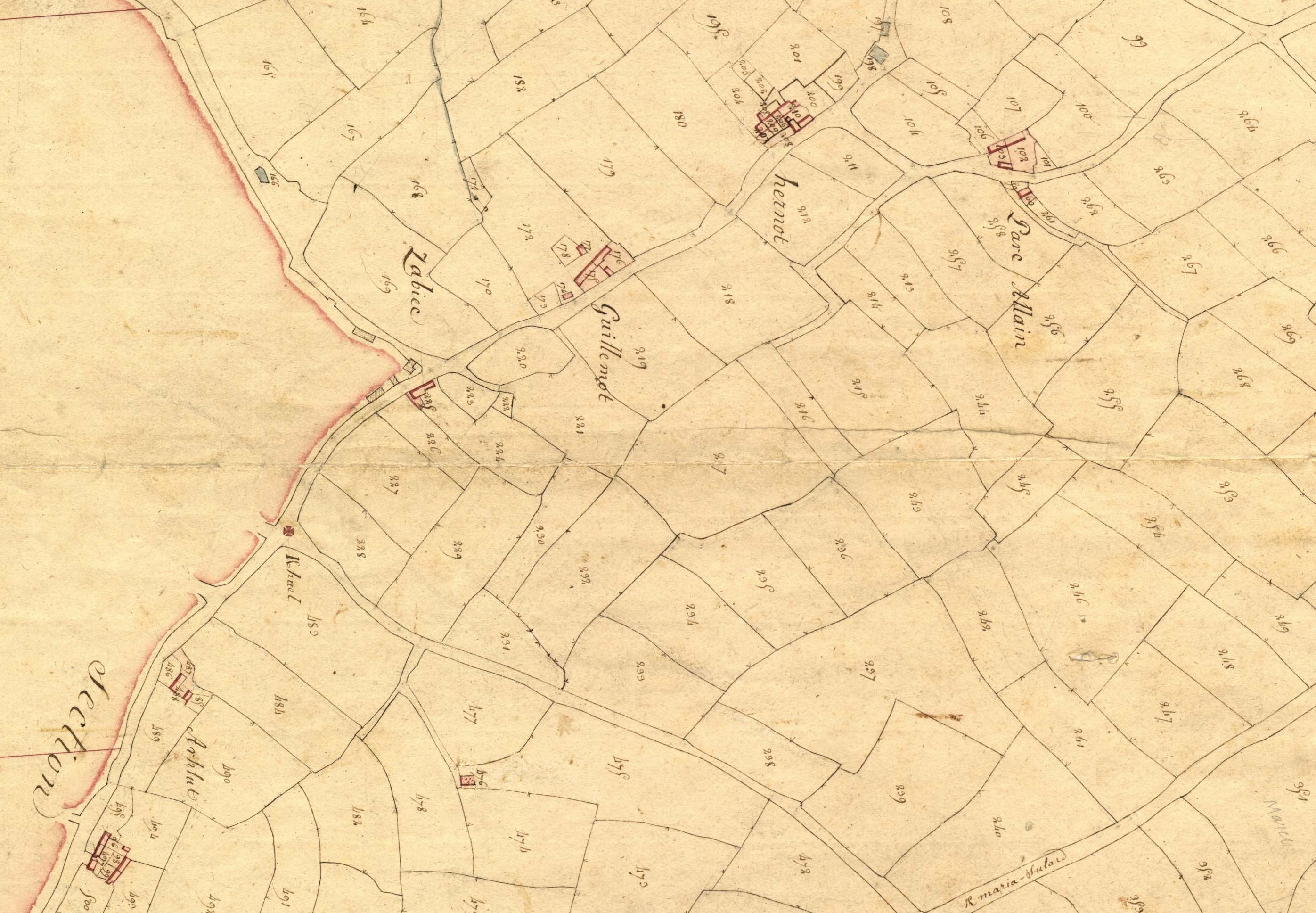 Extrait du cadastre ancien de la commune Kermaria-Sulard, 1819 : emplacement de la croix de KerhuelImmatriculation