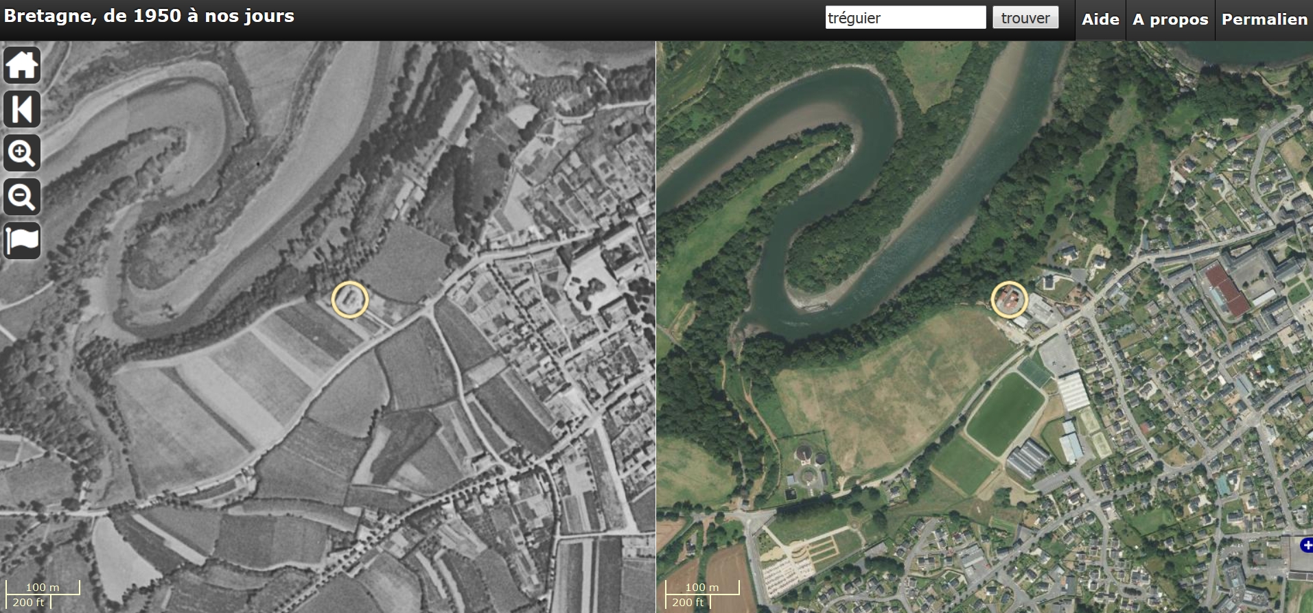 Tréguier : emplacement de l'abattoir municipal à 70 ans d'intervalle (source : site Internet, "Bretagne, de 1950 à nos jours")Immatriculation