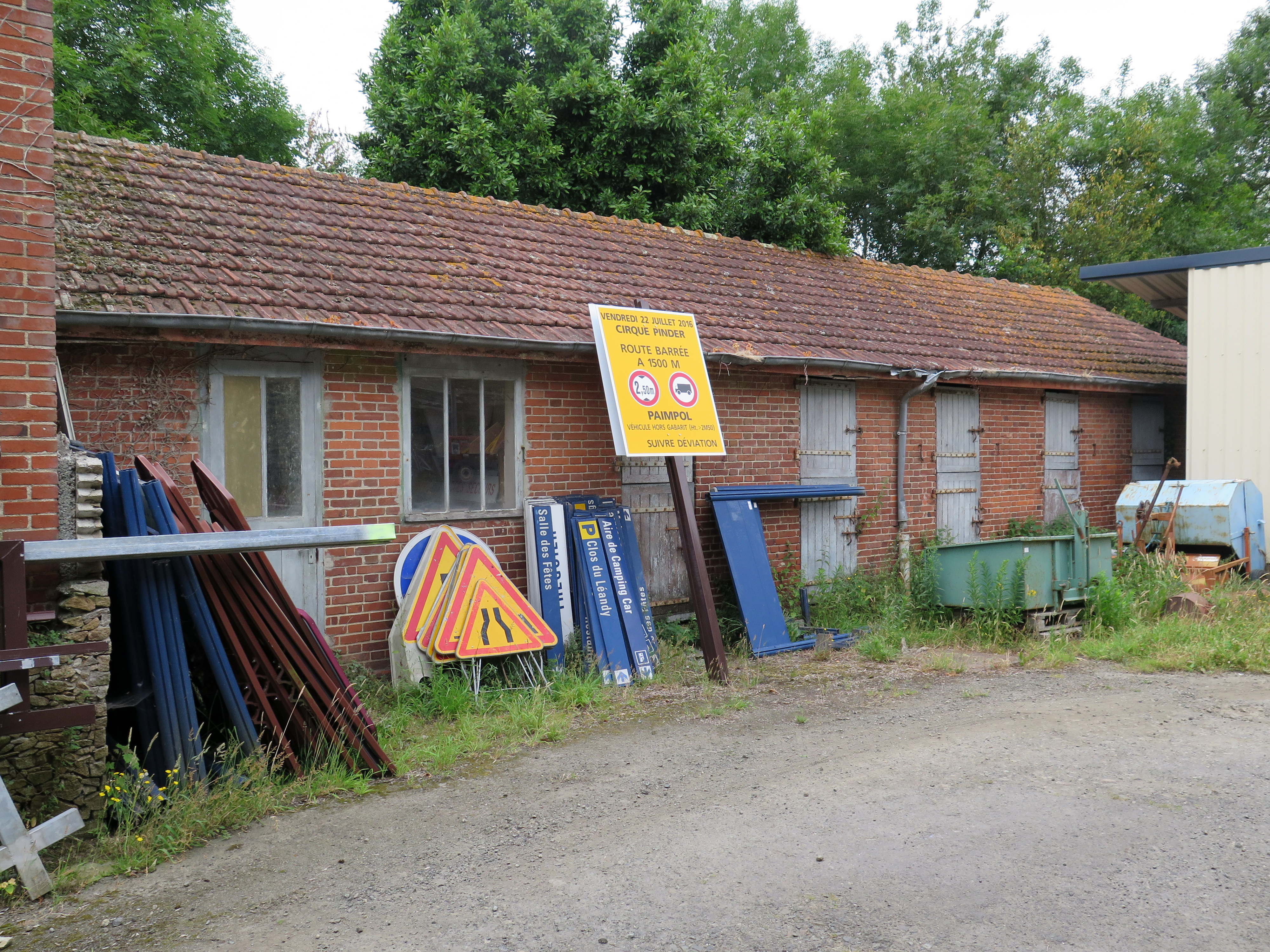 Tréguier, rue du Guindy : abattoir public municipal, "cases à porcs" en appentis contre le mur de clôture. A l'extrémité de l'alignement : "lavabo vestiaire" des usagers de l'abattoirImmatriculation