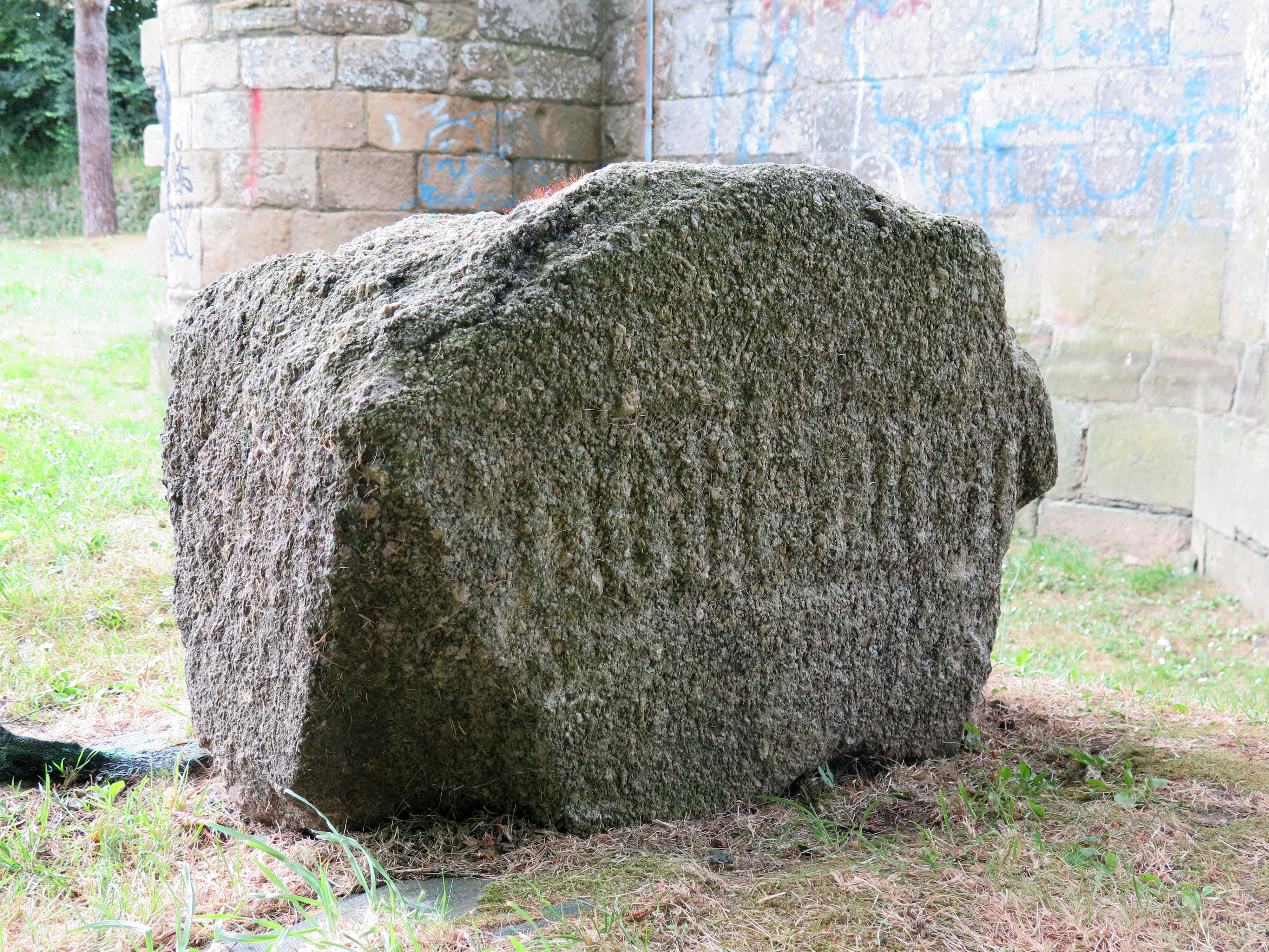 Tréguier : socle de croix de la tour Saint-Michel, inscription en lettres gothiquesImmatriculation