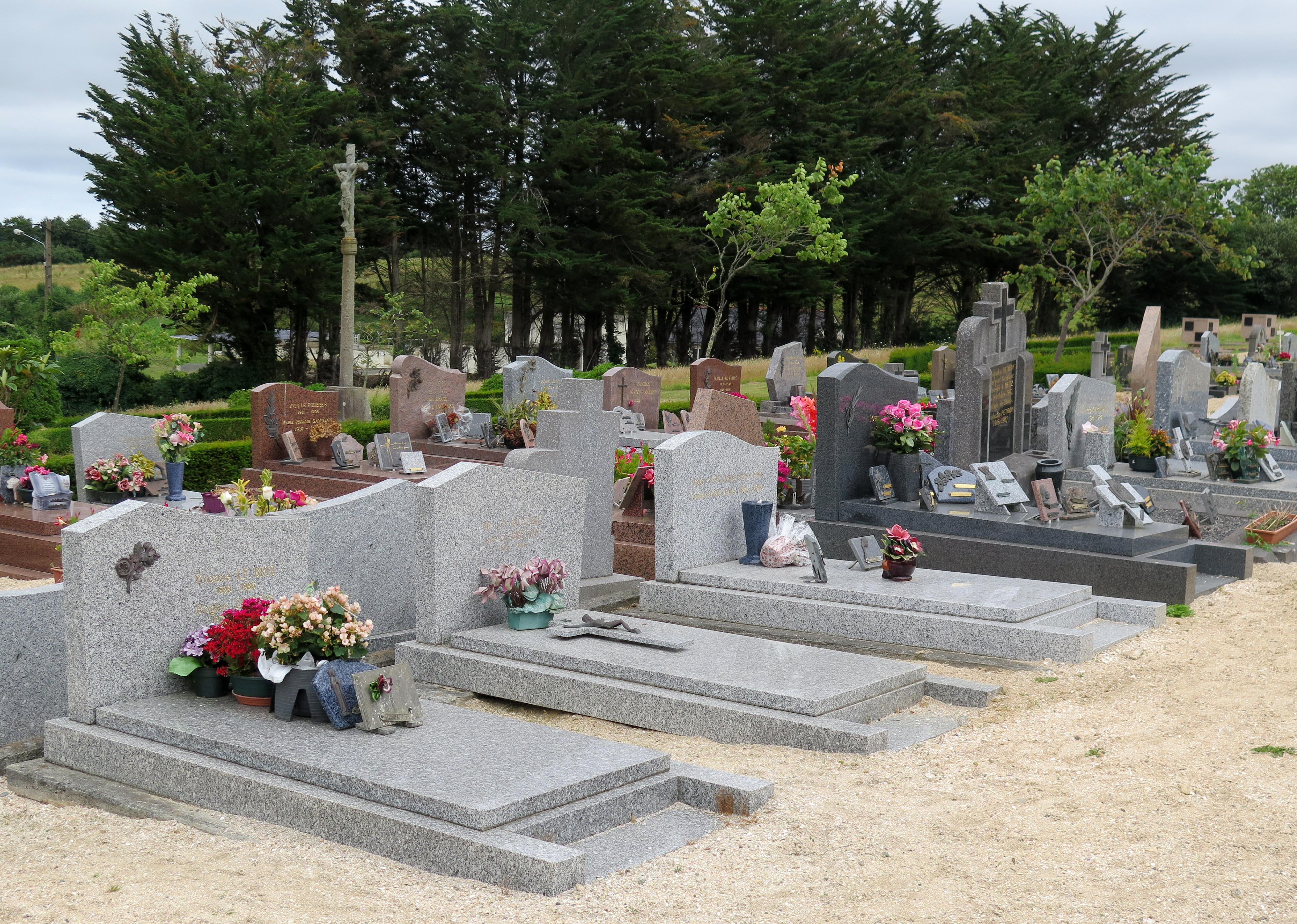 Tréguier, rue du Guindy : cimetière du Bilo, vue générale. En arrière plan, la croix de cimetièreImmatriculation