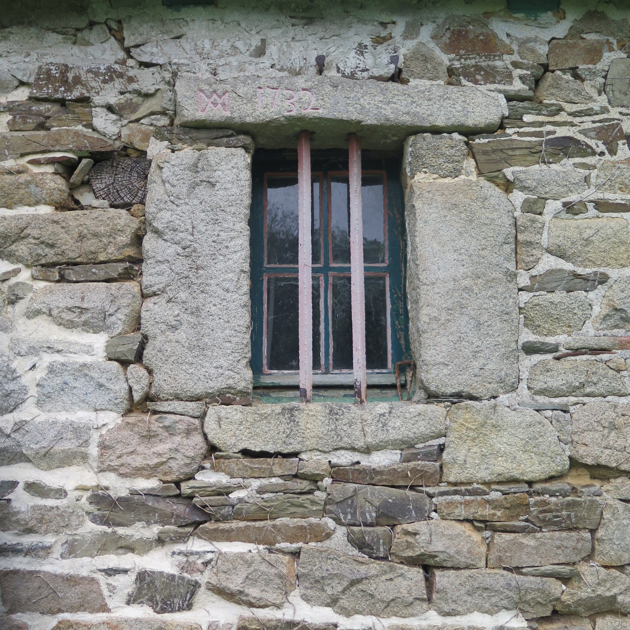 Kerdossen. Logis à pièce unique, 1732. Détail de la fenêtre datéeImmatriculation