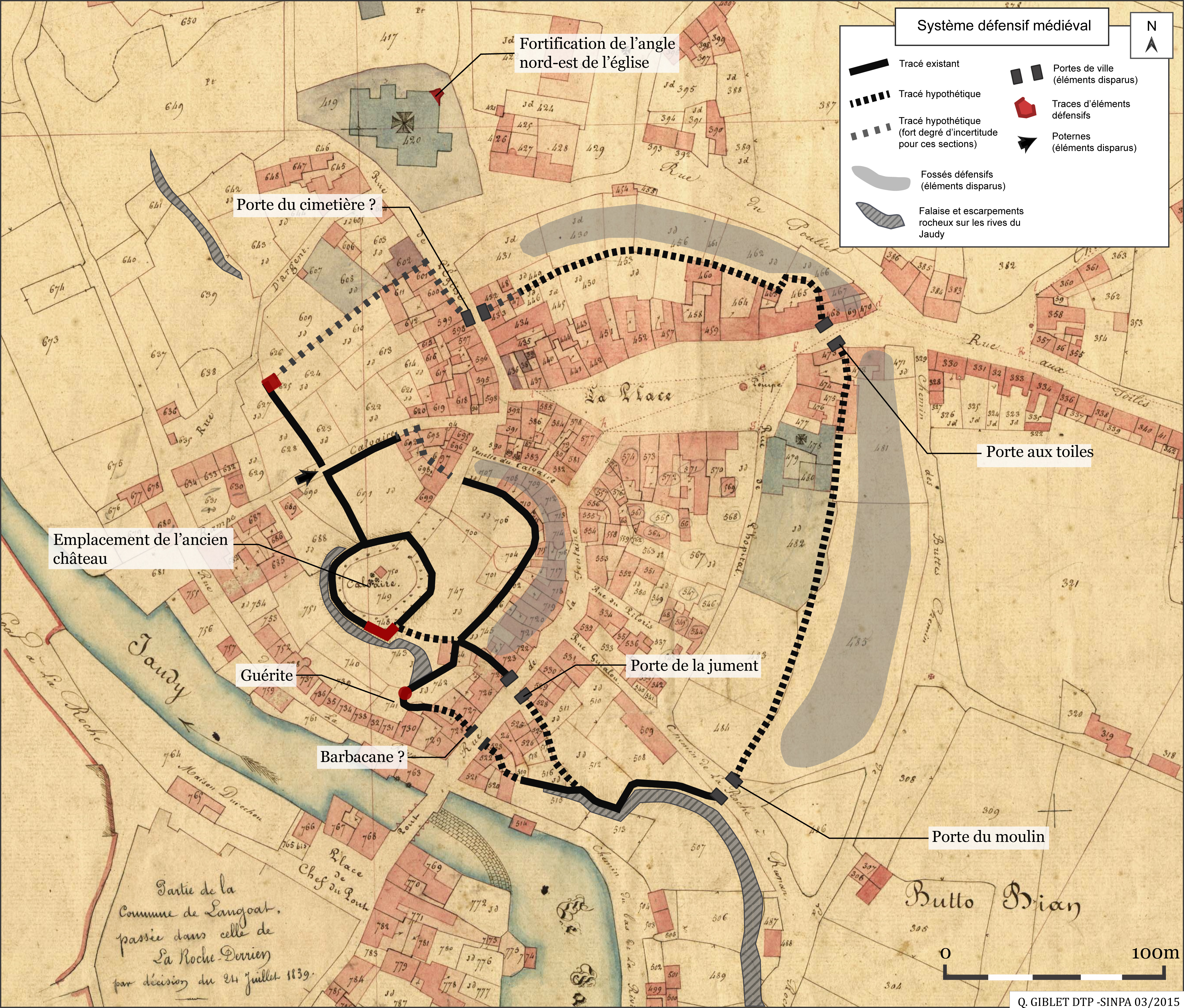 Carte de restitution du tracé avéré et supposé des remparts de la villeImmatriculation