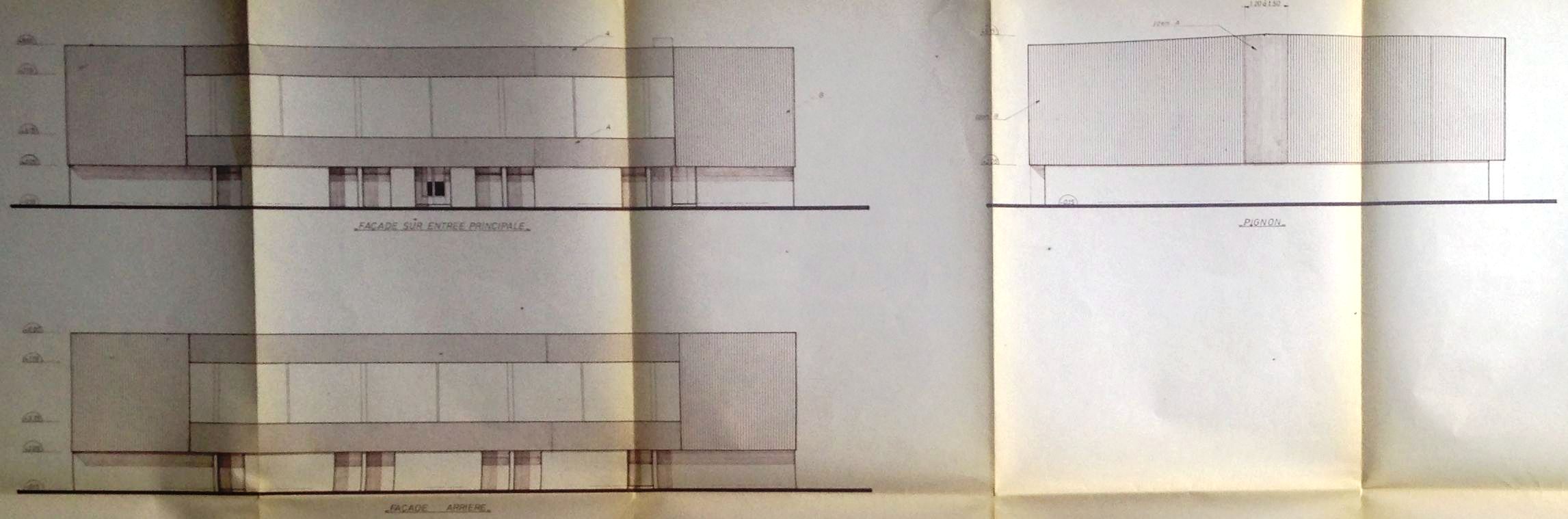 Façades du gymnase du L.E.P. Les Villages / P.Morel, del. 1 : 100.