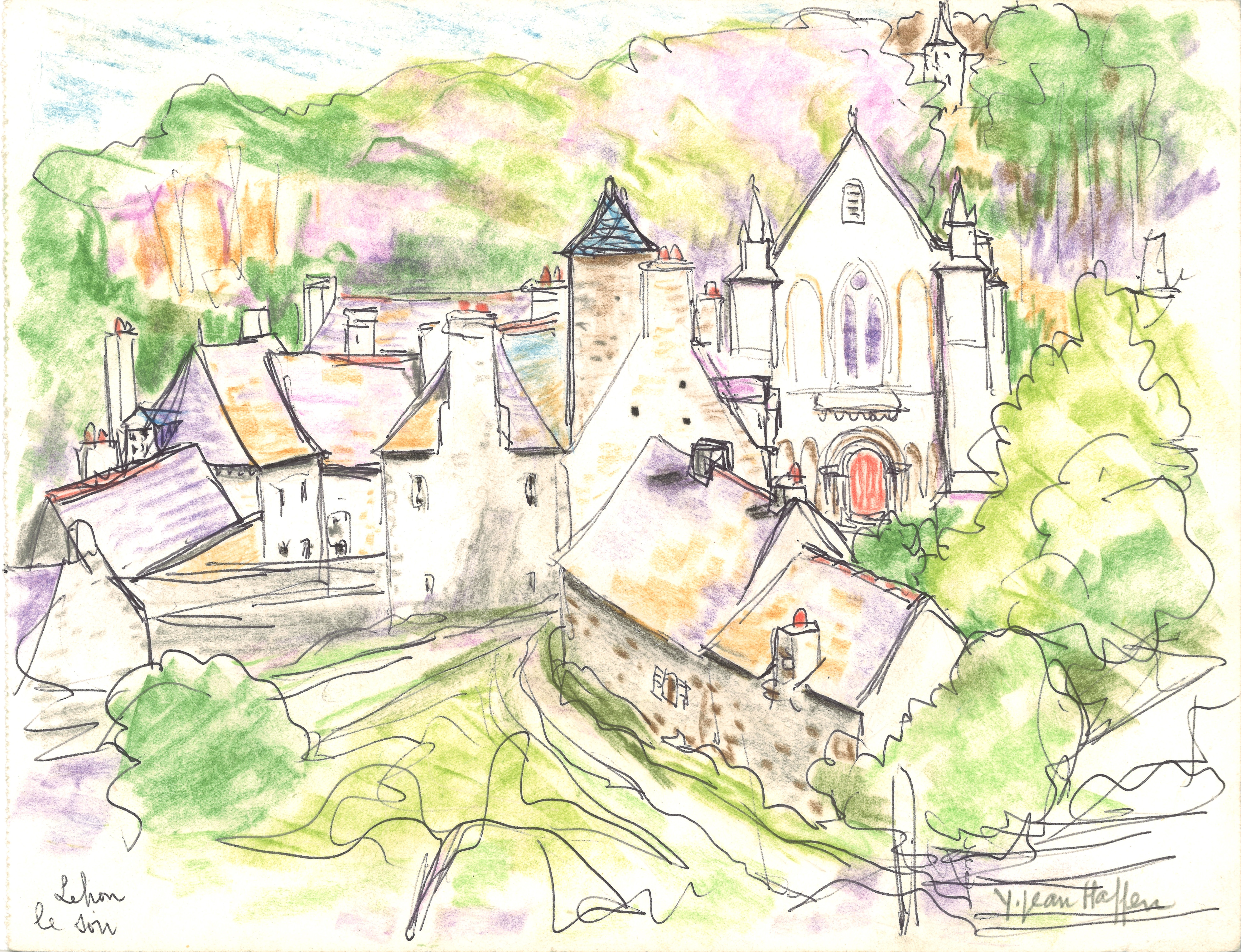 Vue de l'abbaye de Léhon, dessin par Yvonne Jean-HaffenImmatriculation