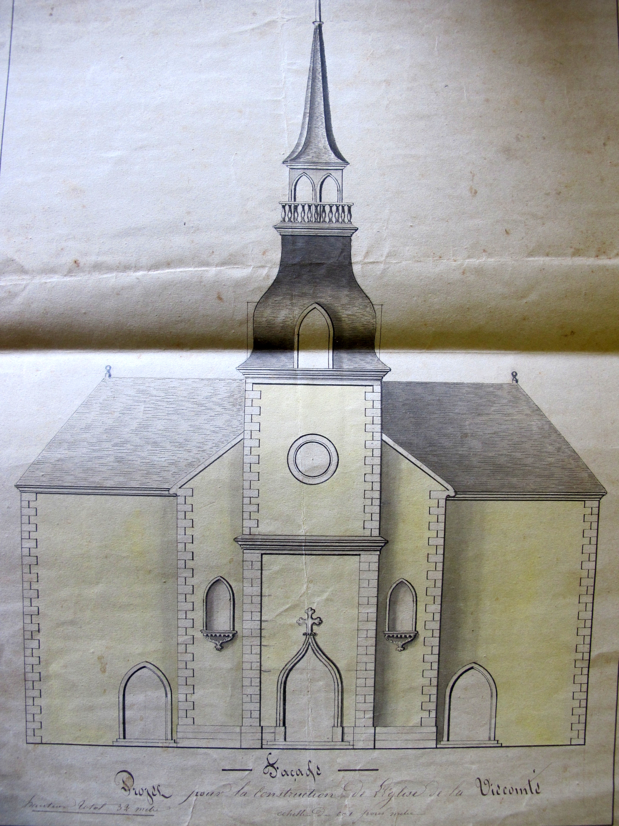 Elévation ouest, projet pour la construction de l'église de la Vicomté, par P. Launay, architecte à DinanImmatriculation