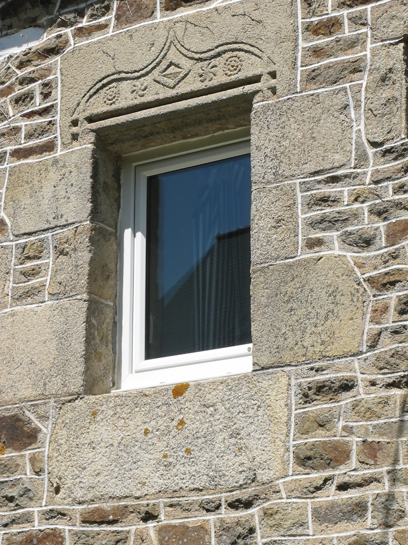 Détail : linteau réemployé, sculpté d'une accoladeImmatriculation