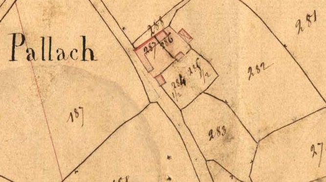 La ferme du Pallac'h en 1834. Extrait du cadastre ancien, section B1 (A.D22, série 3P 33/2)Immatriculation