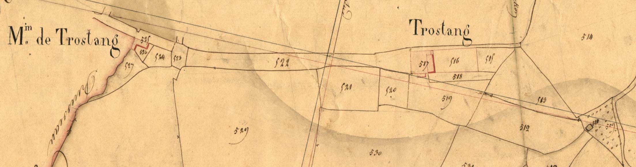 Le logis de Trostang en 1834. Extrait du cadastre ancien, section c2 (A.D22, série 3P33/1)Immatriculation