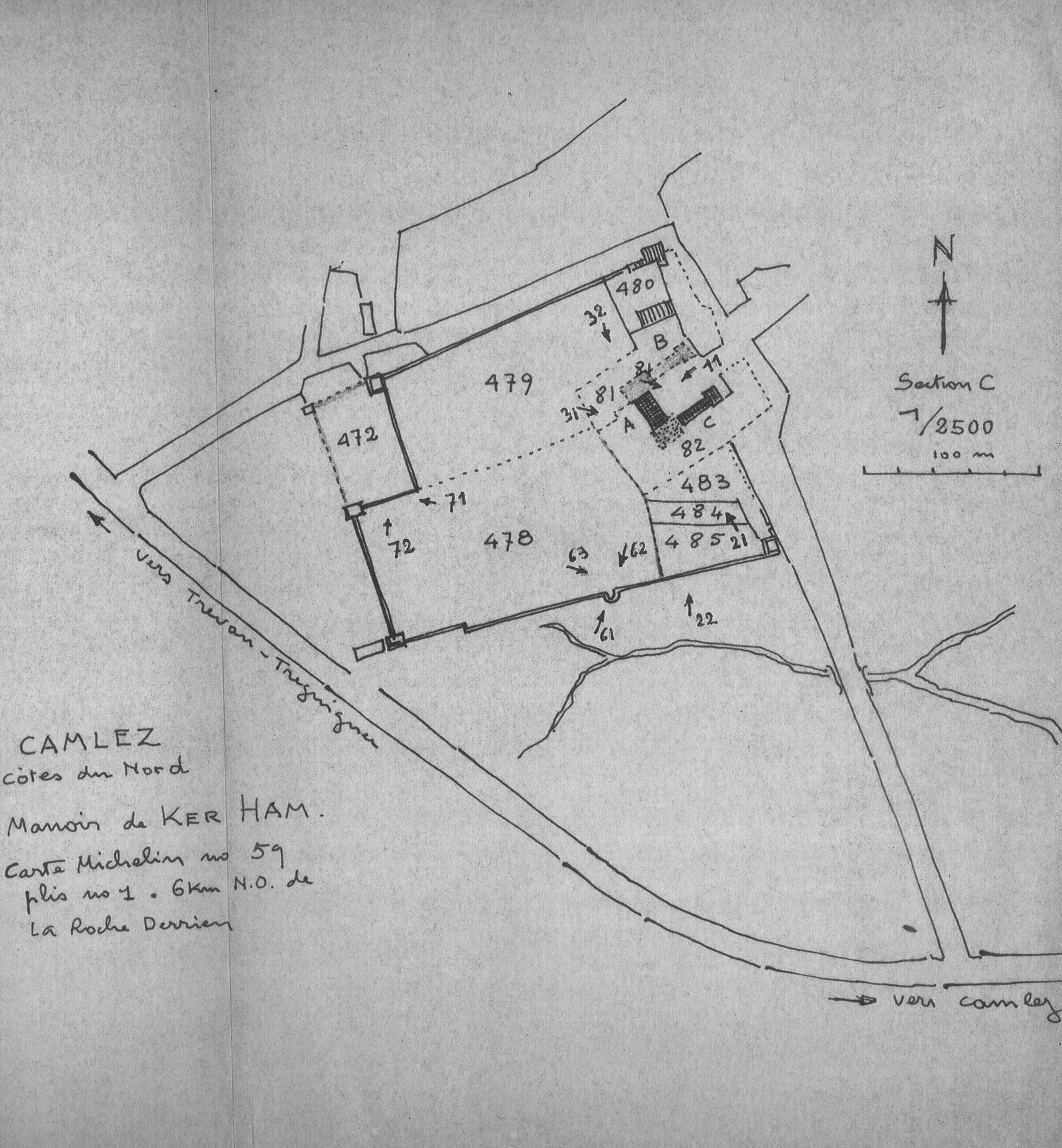 Château de Kerham (Camlez) - Camlez, Kerham : château, plan de l'enceinte, ancien croquis (1960)Immatriculation