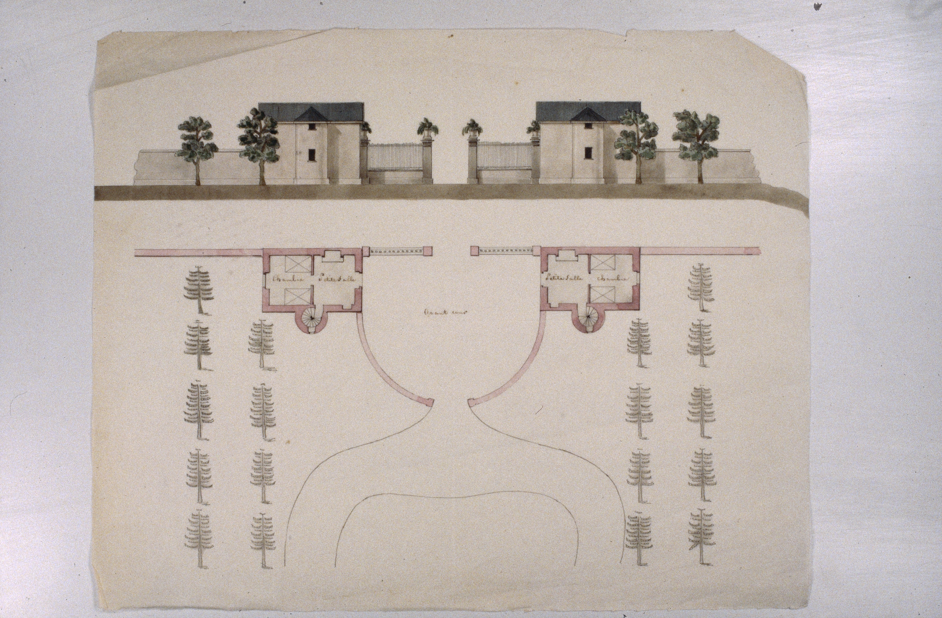 Plan d'ensemble du portail et des pavillons d'entrée du château de LargentayeImmatriculation