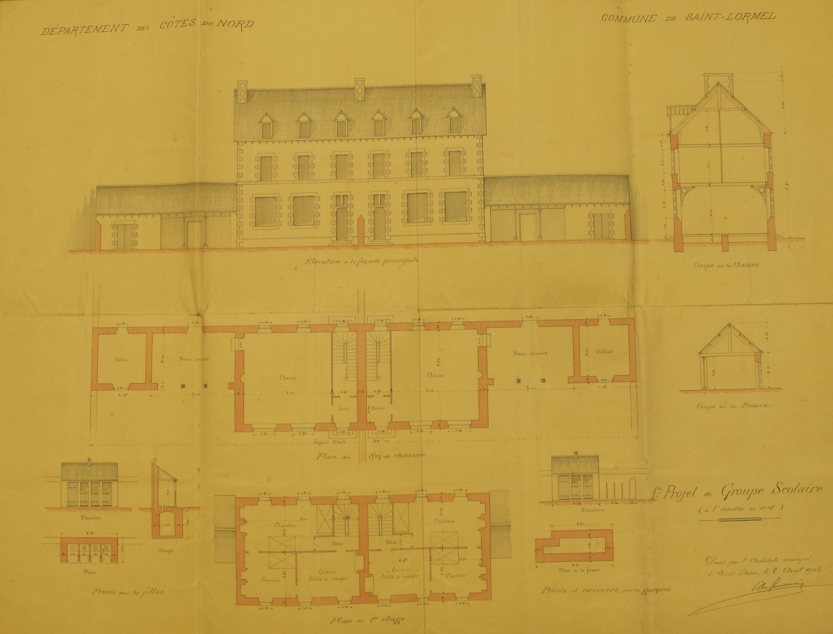 Plan de l'école Saint-Pierre (Saint-Lormel) par Le Guerranic (A. D. Côtes d'Armor, 2 o 311/1)Immatriculation