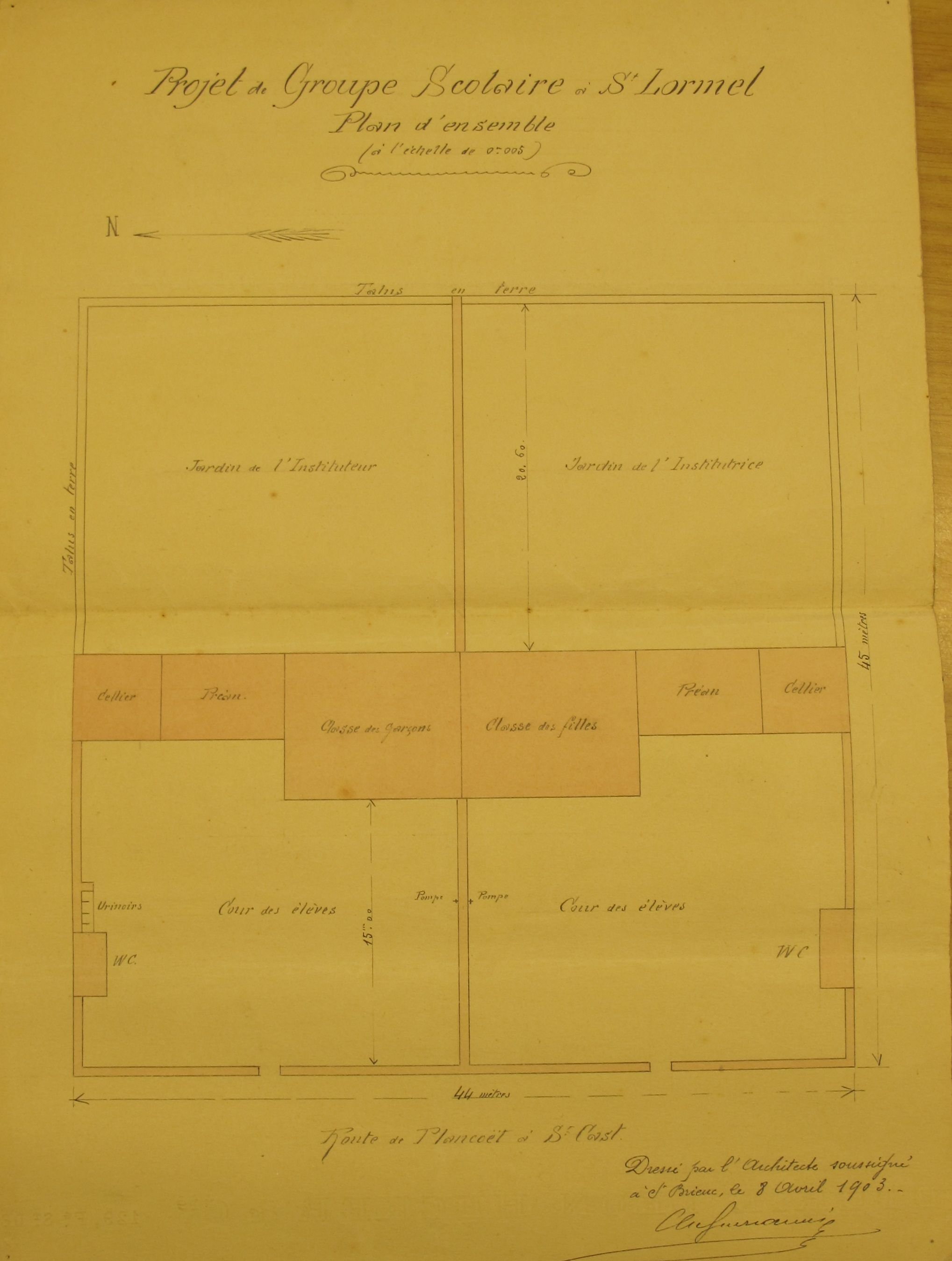 Plan d'ensemble de l'école Saint-Pierre (Saint-Lormel) par le Guerranic (A. D. Côtes d'Armor, 2 O 311/1)Immatriculation