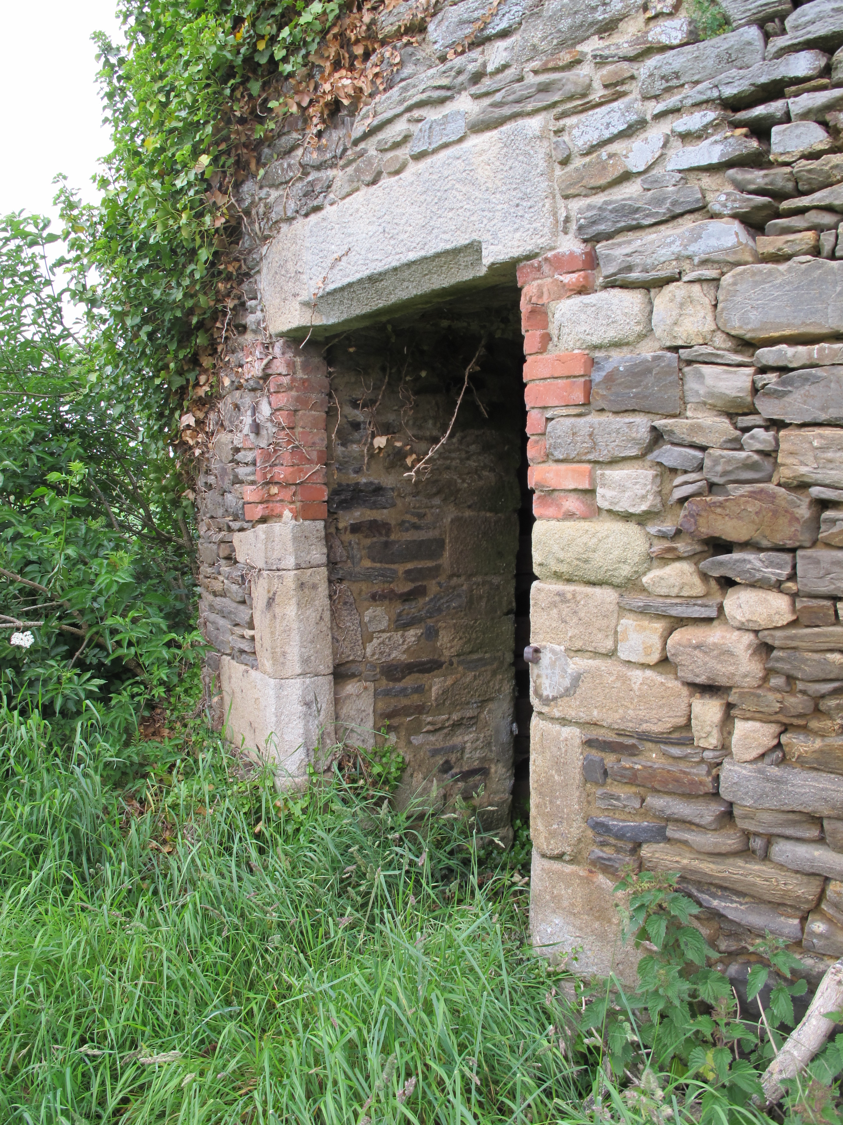 Encadrement de la porte d'accès du colombier en granite et briqueImmatriculation