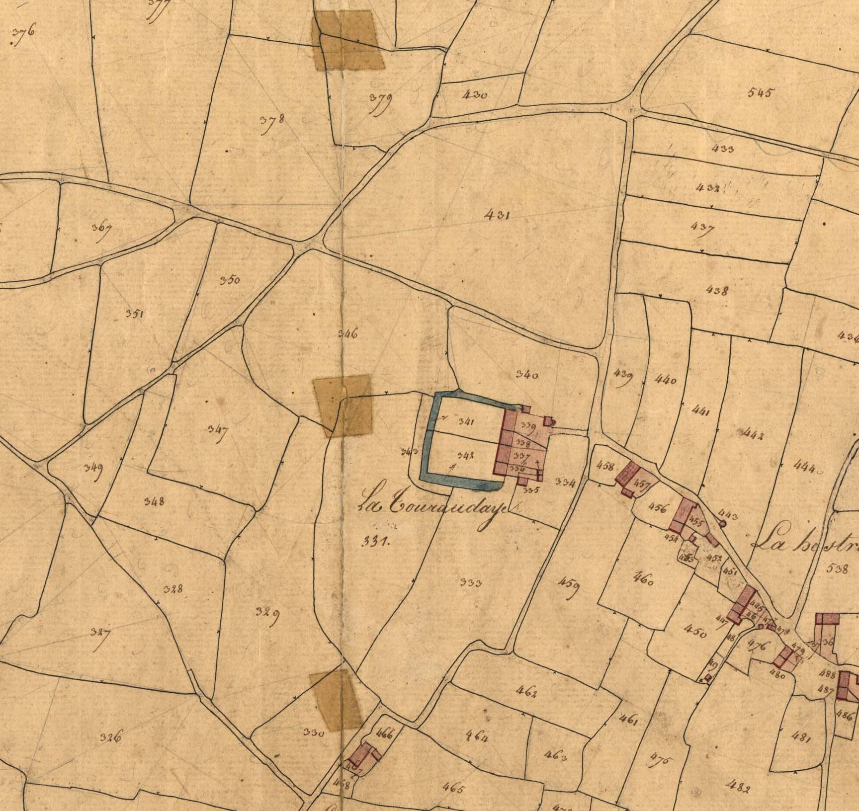 Extrait du cadastre ancien de 1827, manoir de La Touraudaye, feuille D2Immatriculation