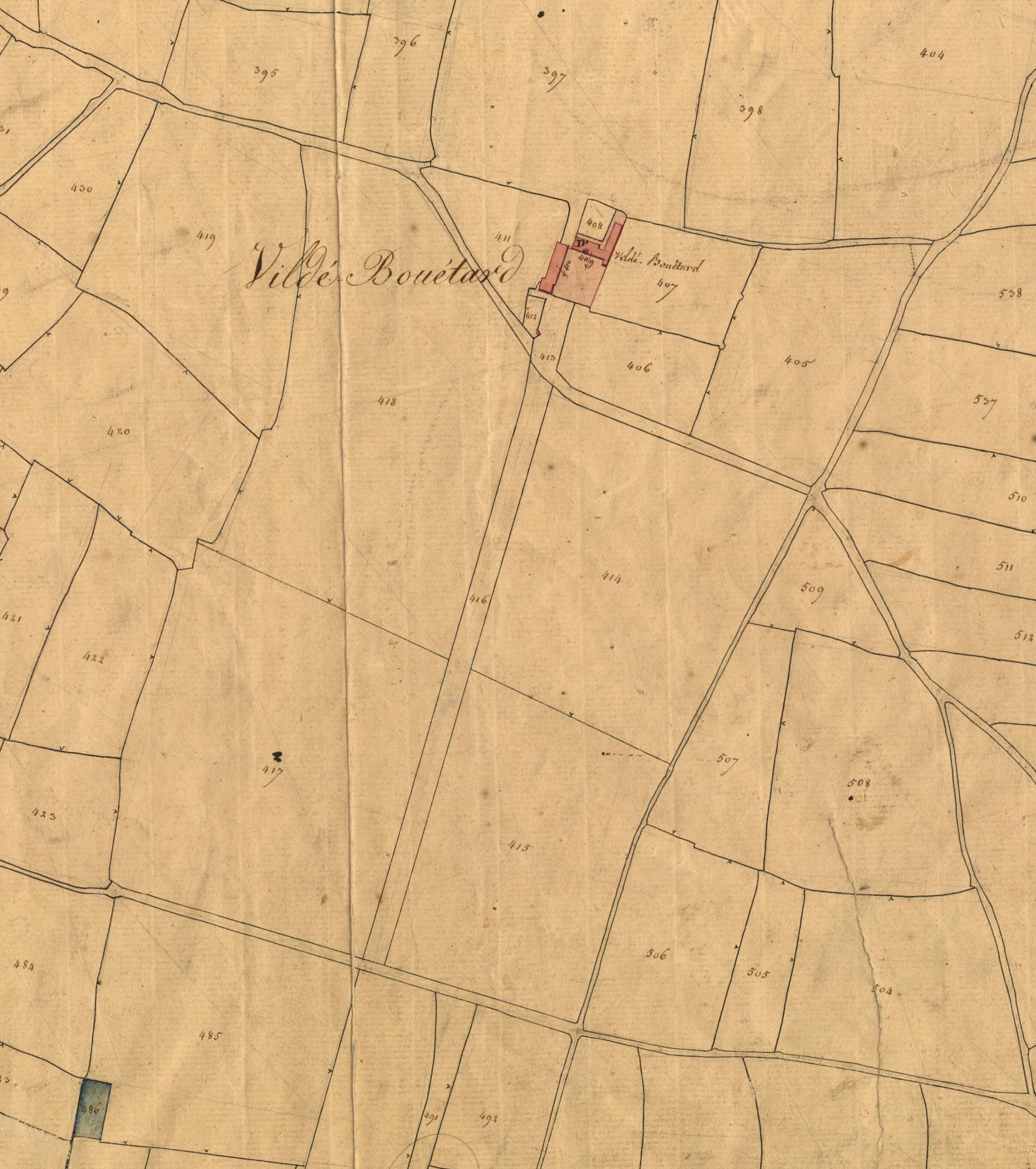 Extrait du cadastre ancien de 1827, manoir de La Vildé Bouétard, feuille F2Immatriculation