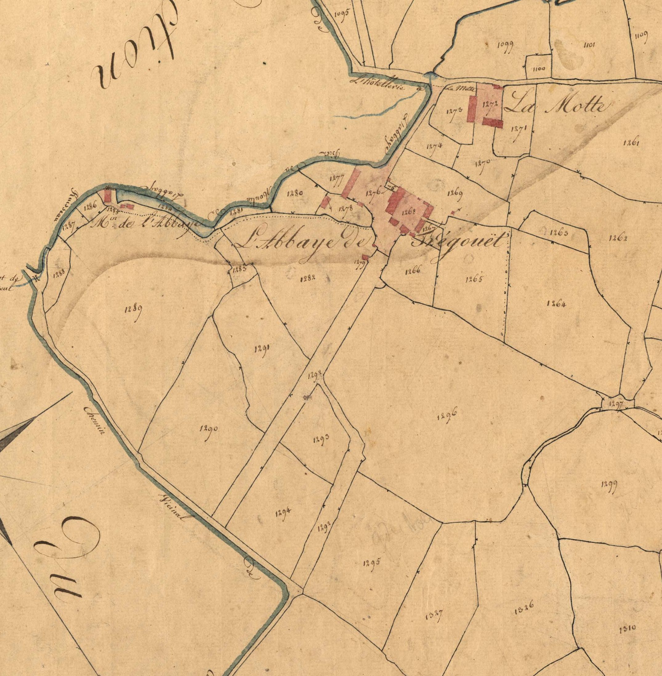 Extrait du cadastre ancien de 1827, manoir de L'Abbaye de Trégouët, feuille H3Immatriculation