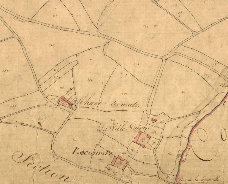 Emplacement de la chapelle de L'écomtaz (parcelle 187), extrait de section F1, cadastre ancien de 1827Immatriculation