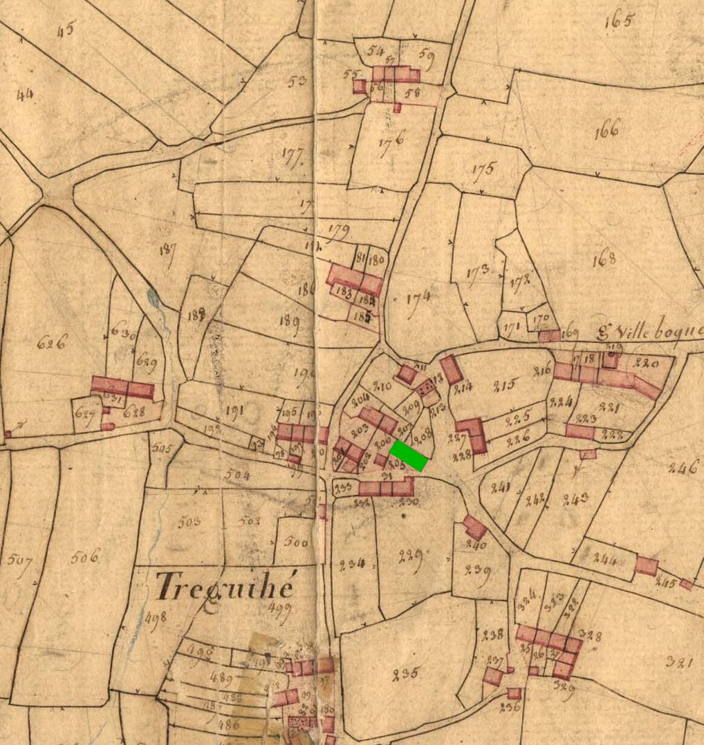 Emplacement de la chapelle de Tréguihé, extrait de section C1 du cadastre ancienImmatriculation