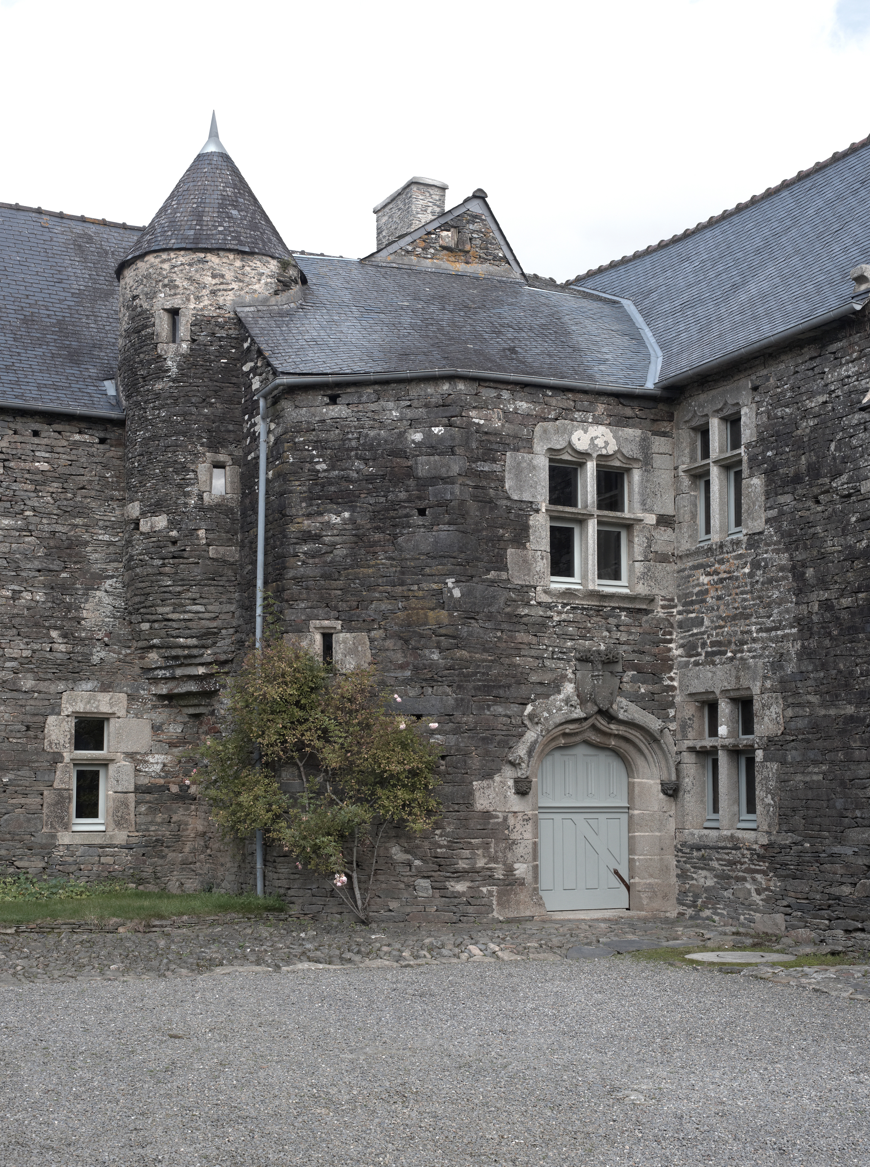 Vue de détail de la tour d'escalier du manoirImmatriculation