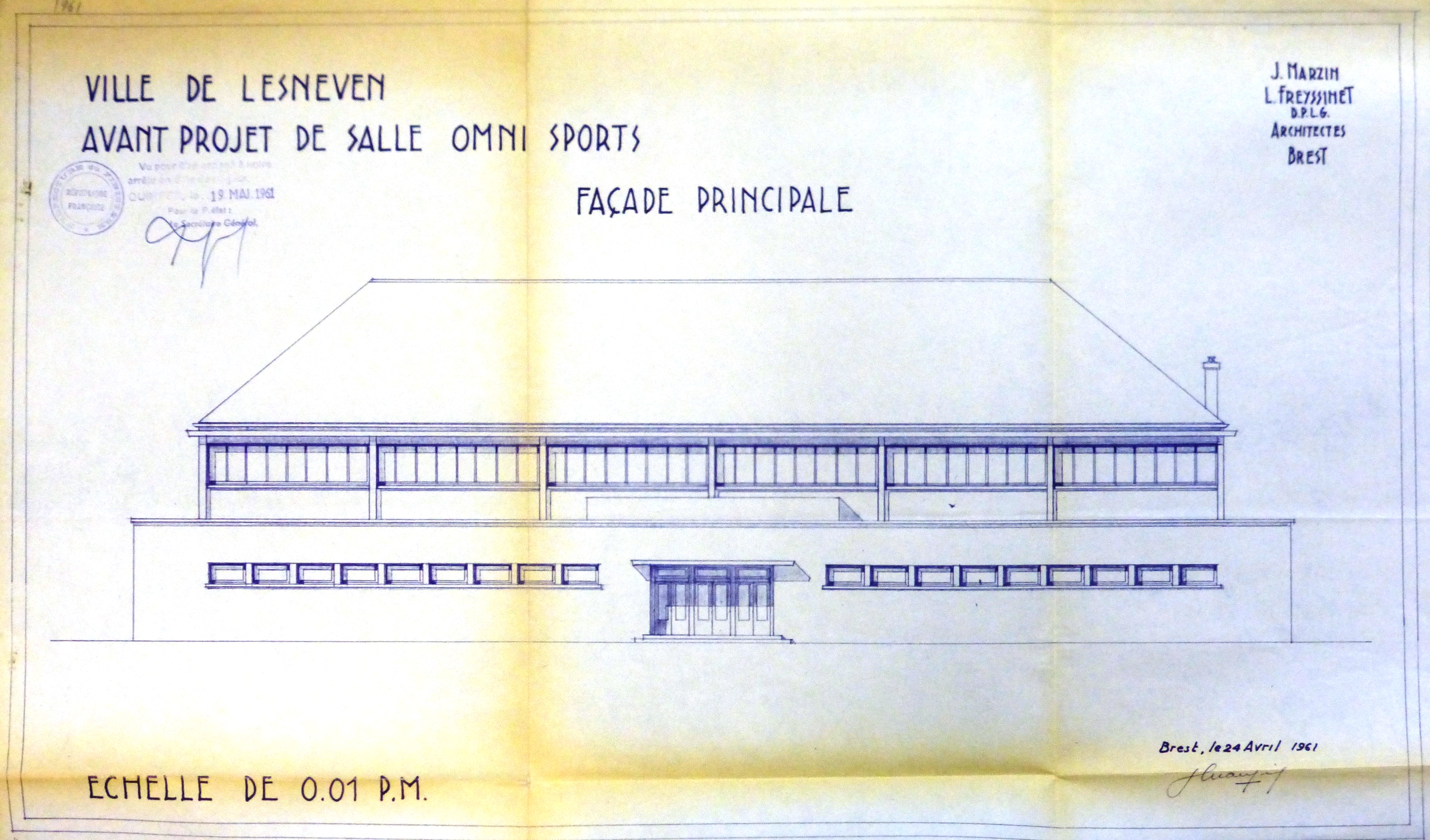 AD Finistère : 137 W 131. Façade principale. J. Marzin & L. Freyssinet, 1961.
