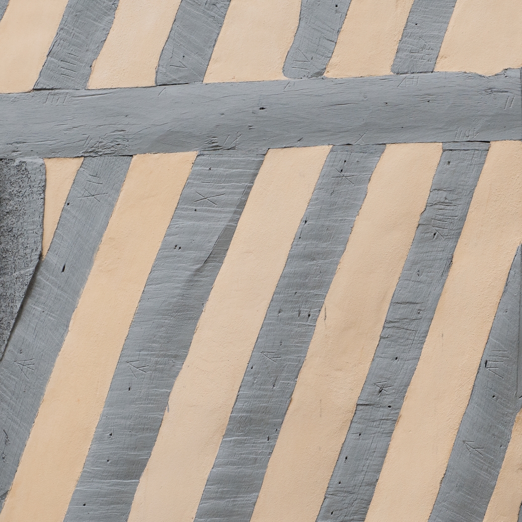 4 rue de la Psalette, détail de la façade en pan de bois avec ses marques d'assemblageImmatriculation