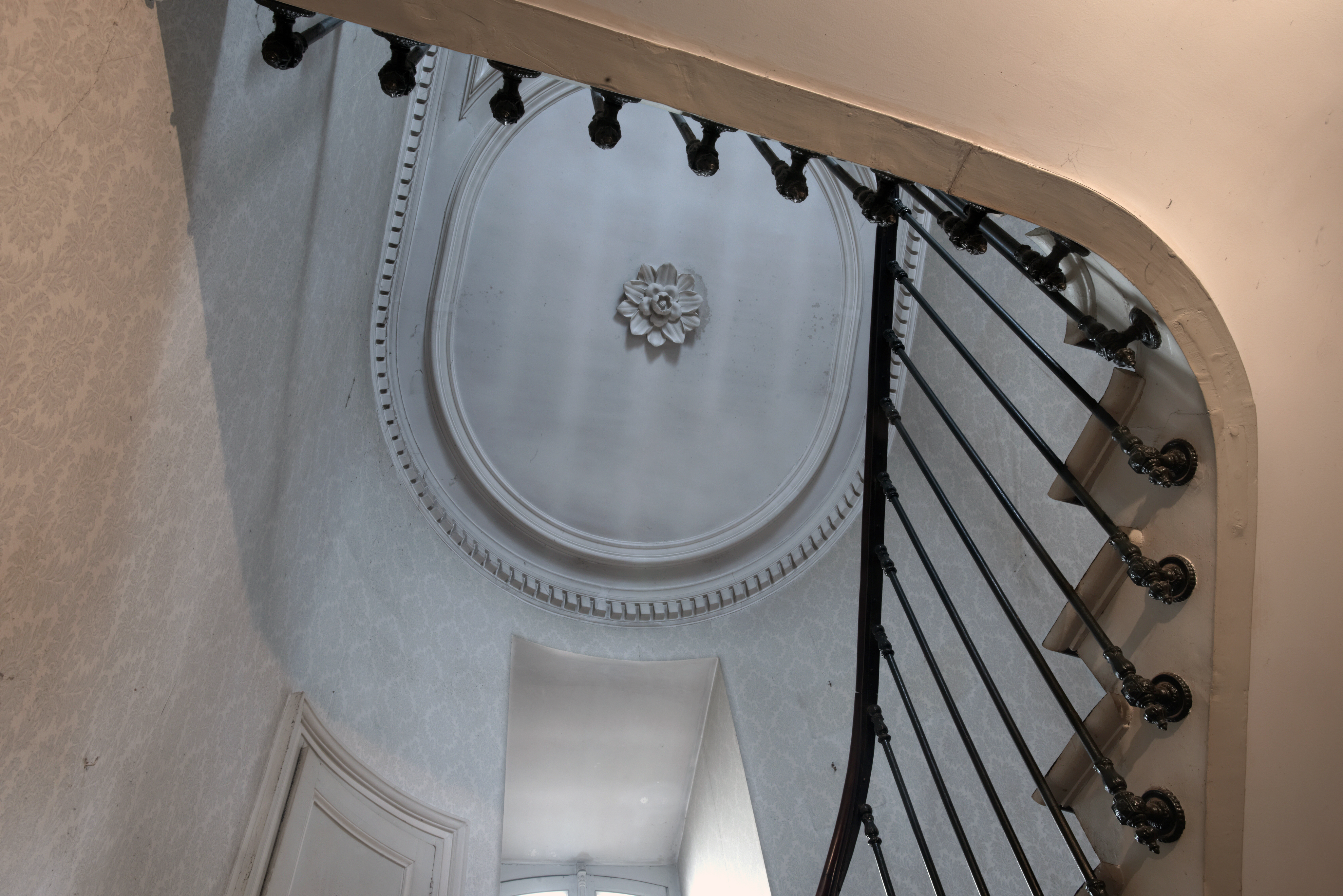 Décor du plafond de l'escalier vu depuis le palier du premier étageImmatriculation