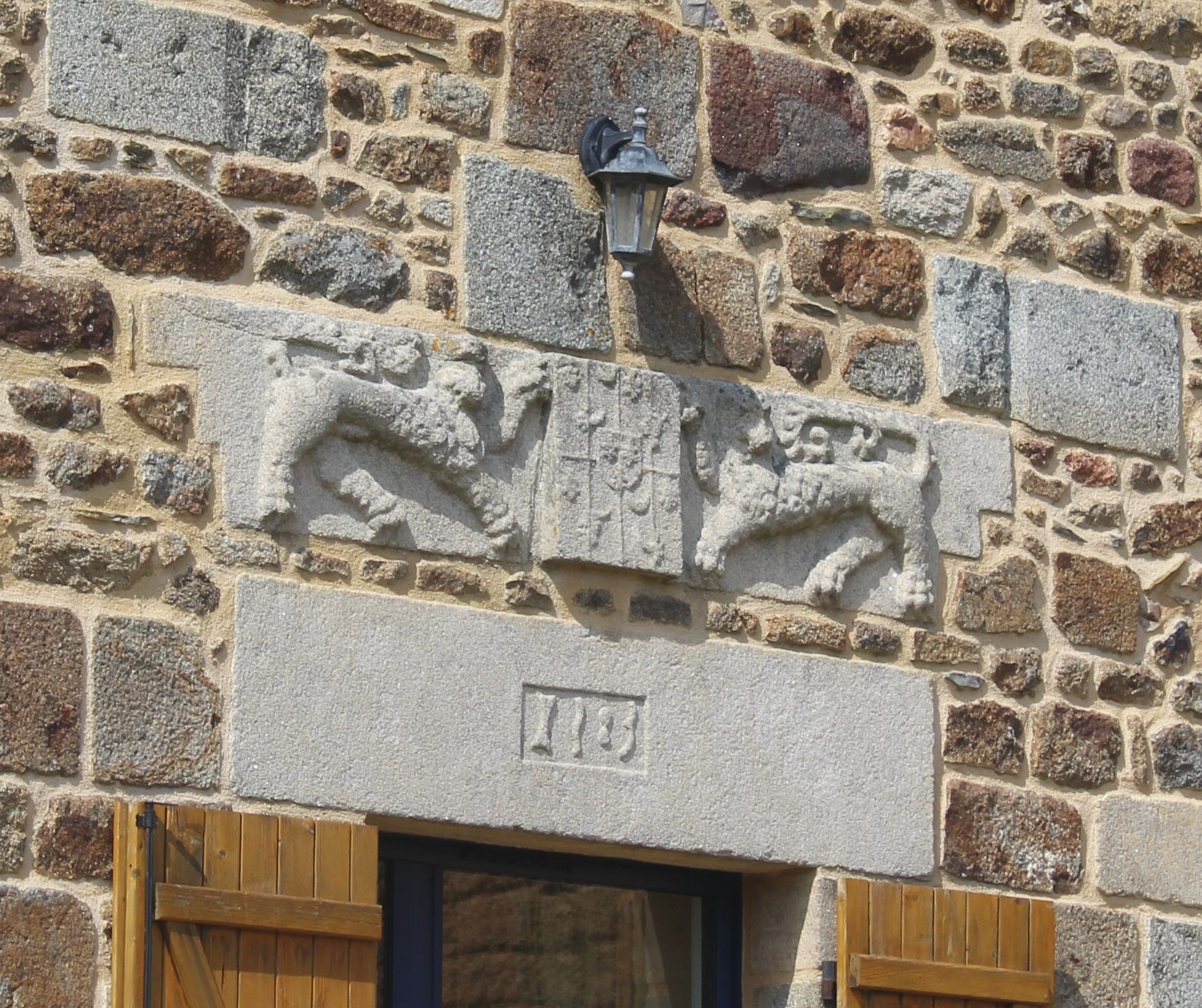 Détail du second linteau sur la façade de l'ancien manoir du Breil SaminImmatriculation