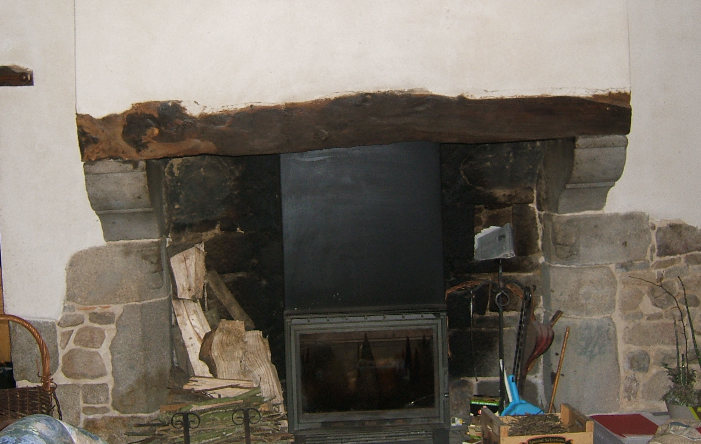 La Rousselais : cheminée aux piédroits sculptés.Immatriculation