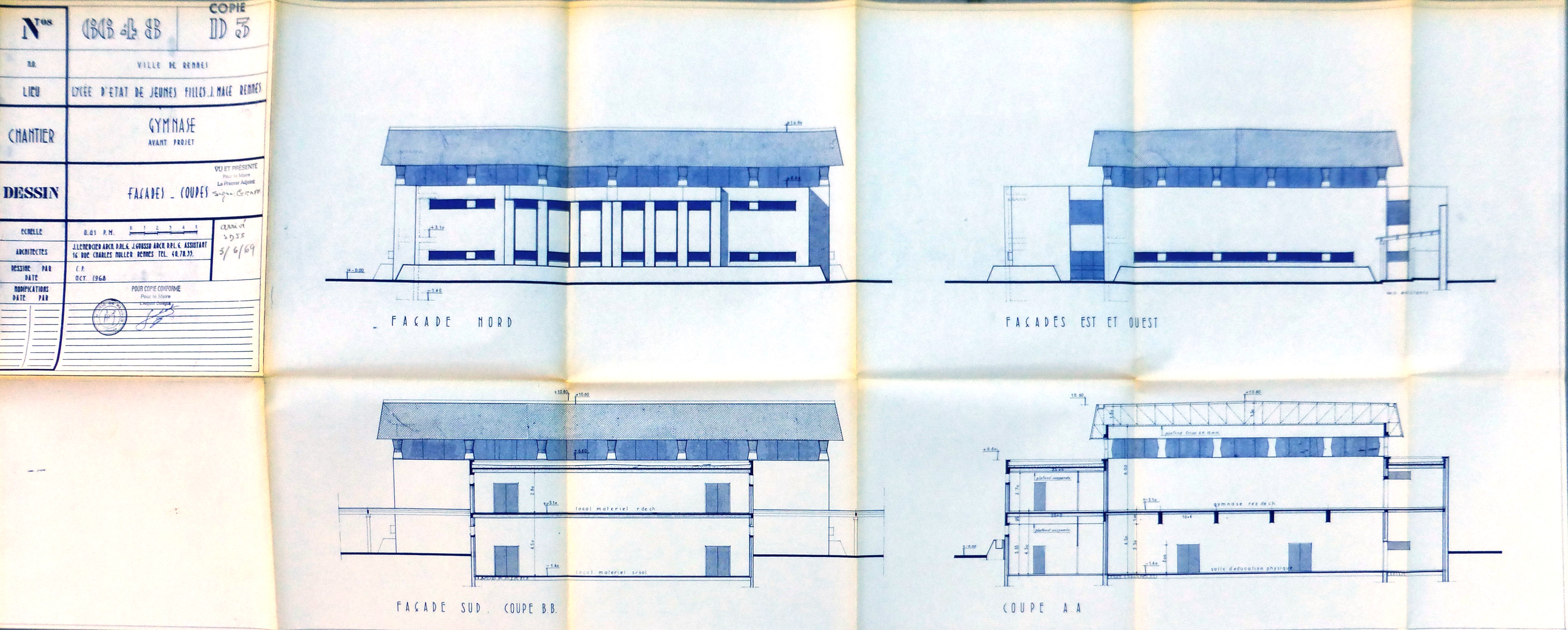 AD Ille-et-Vilaine : 1240 W 143. Façades-coupe. J. Lemercier, 1969.