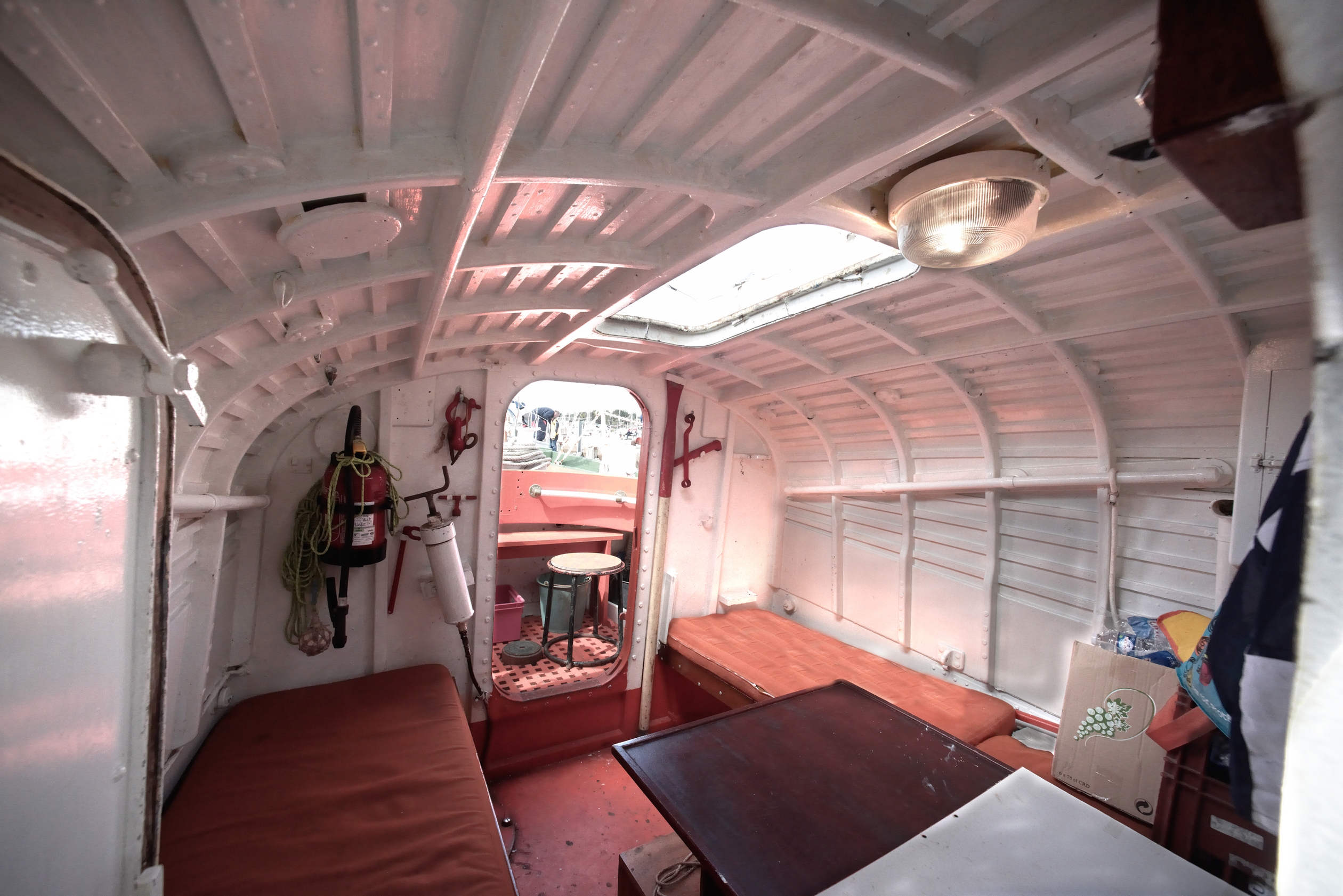 Vue du compartiment du canot destiné aux secourus en merImmatriculation