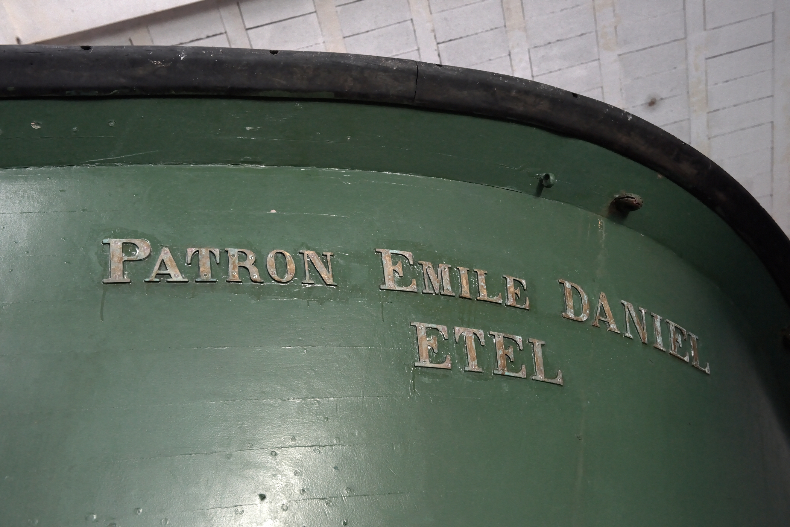 Vue du nom sur la coque du canot patron Emile DanielImmatriculation