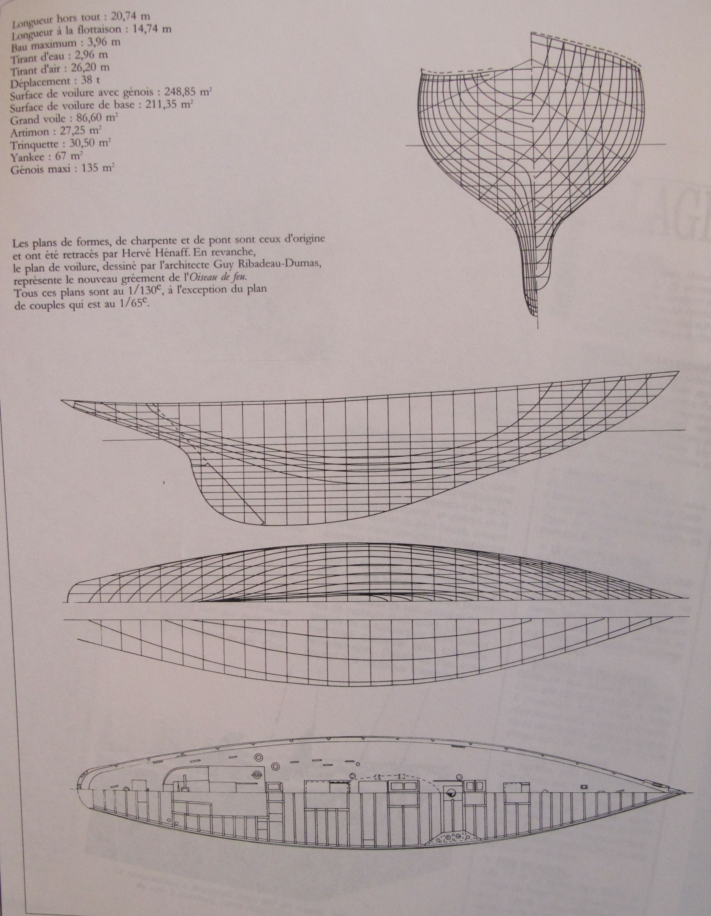 Plan de formes, de charpente et de pont (tracé de Hervé Hénaff)Immatriculation
