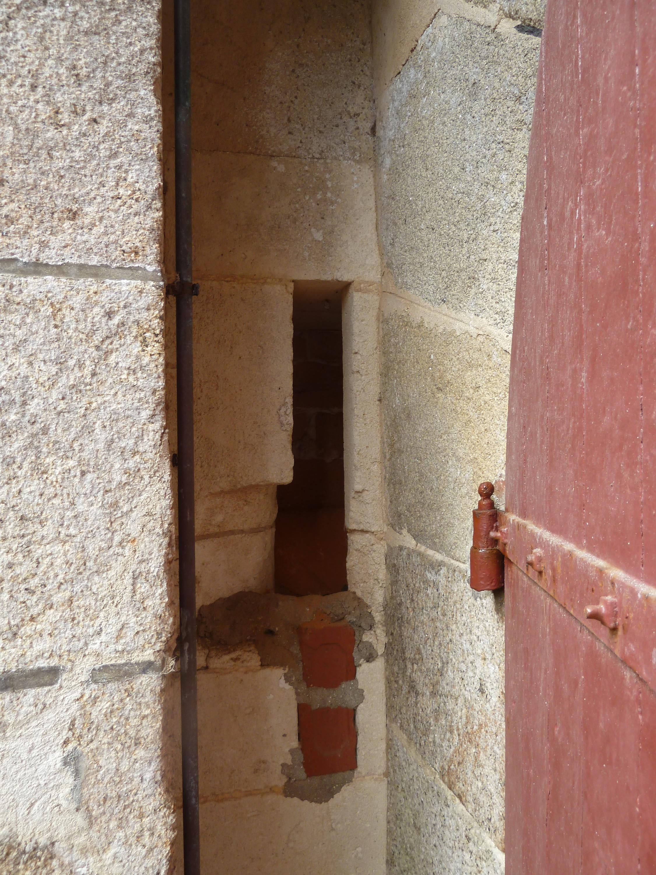 Saint-Pierre-Quiberon, batterie de Beg Quilvi, corps de garde crénelé, créneau de défense de la porte.Immatriculation
