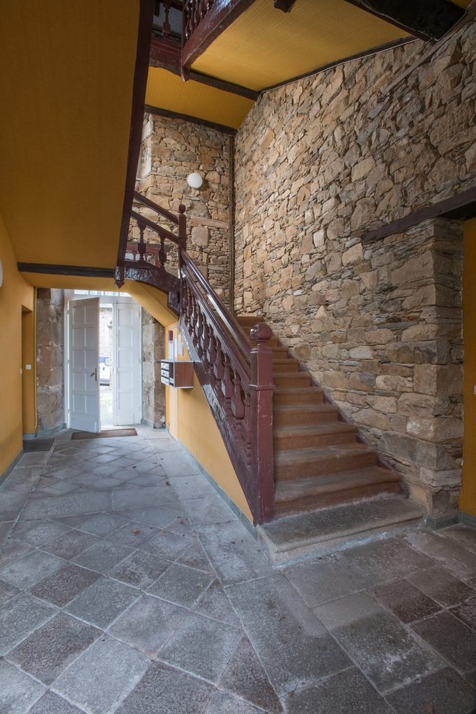 Vestibule d'entrée. Escalier tournant à retours avec jour. Vue généraleImmatriculation