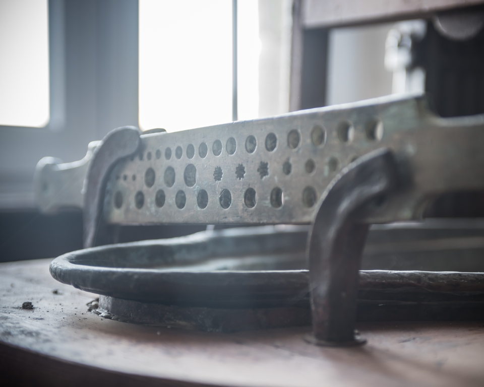 Corps de logis. Matériel pour fabriquer des cierges. Détail d'un gabaritImmatriculation