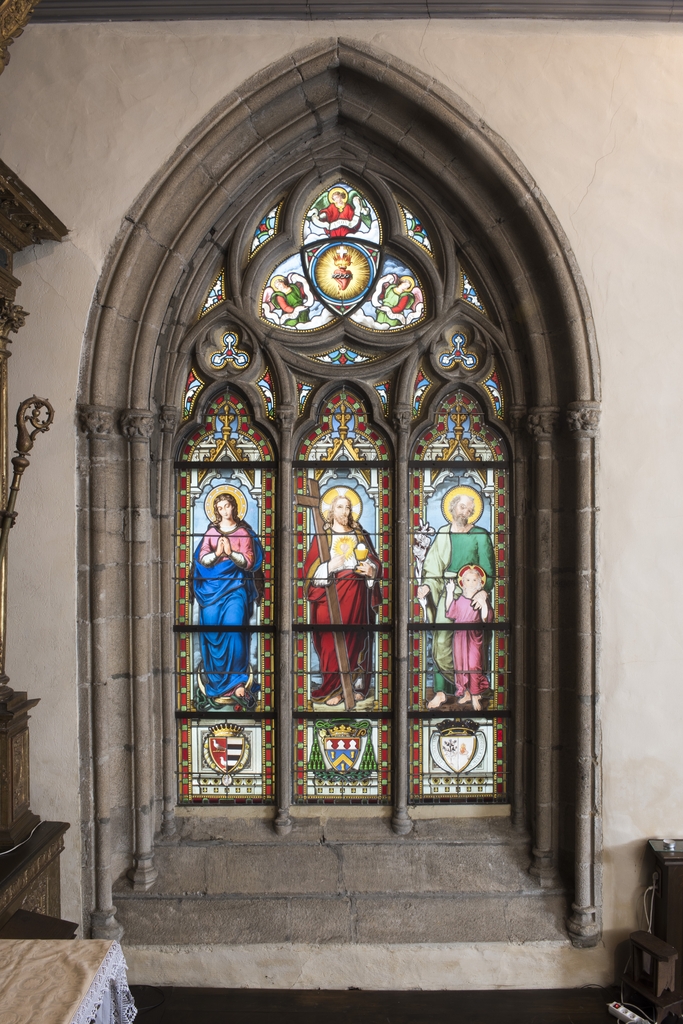 Chapelle Sainte-Marie-Madeleine. Détail d'une baie sud dont le réseau et les vitraux ont été refaits au 19e siècleImmatriculation