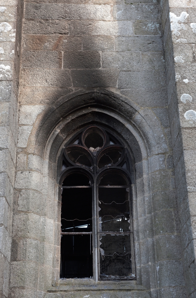 Trémel, le bourg : église paroissiale Notre-Dame, fenêtre ouest (après l'incendie du 21 juin 2016)Immatriculation