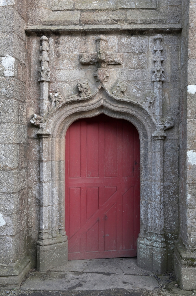 Trémel, le bourg : église paroissiale Notre-Dame, porte ouest (après l'incendie du 21 juin 2016)Immatriculation