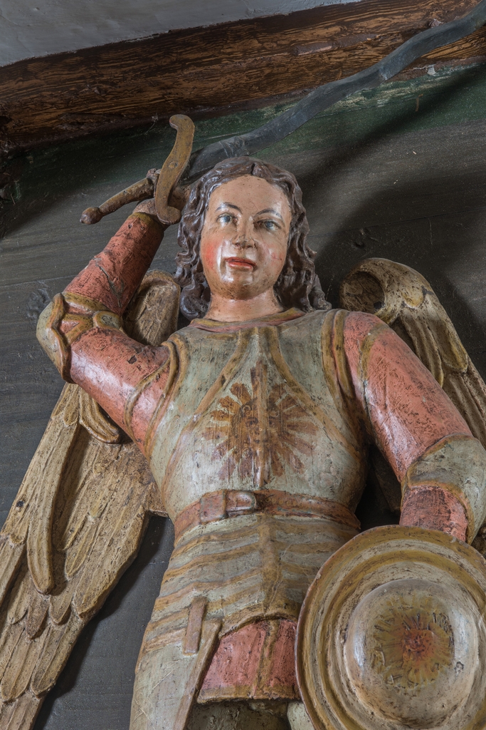 Corps de logis. Statue de saint Michel, 17e siècle. DétailImmatriculation
