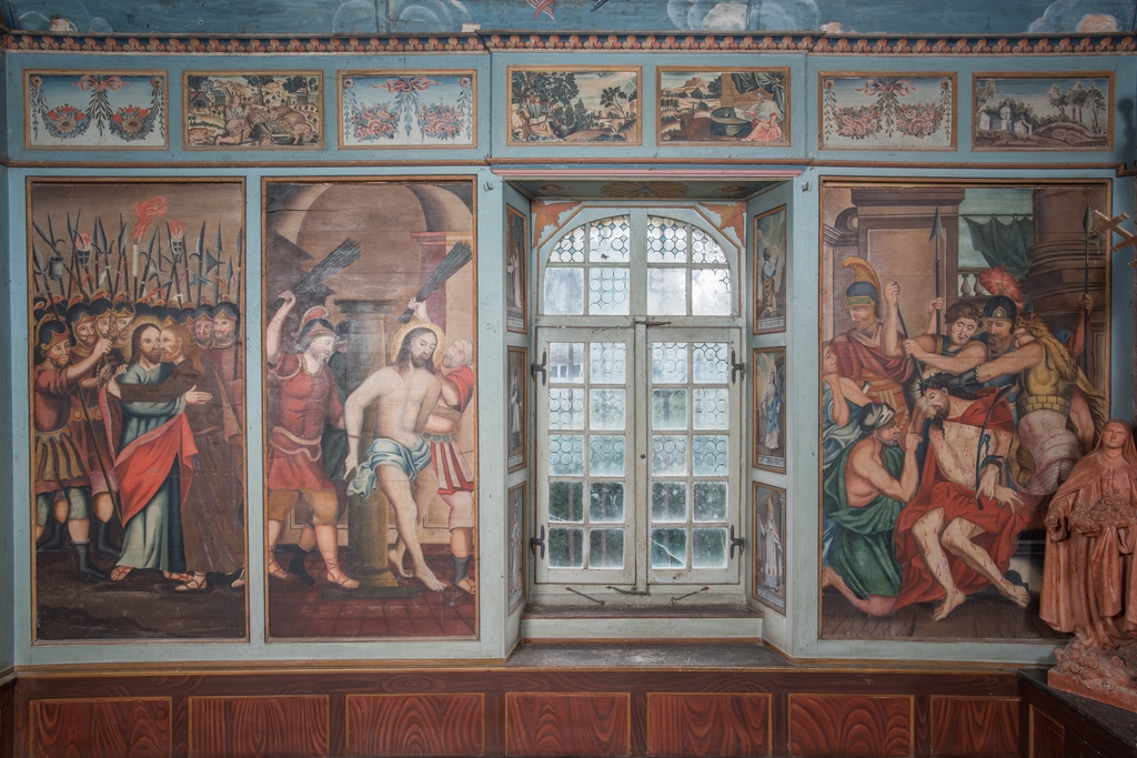 Peintures murales : Le baiser de Judas ; La Flagellation du Christ ; Le Couronnement d'épinesImmatriculation