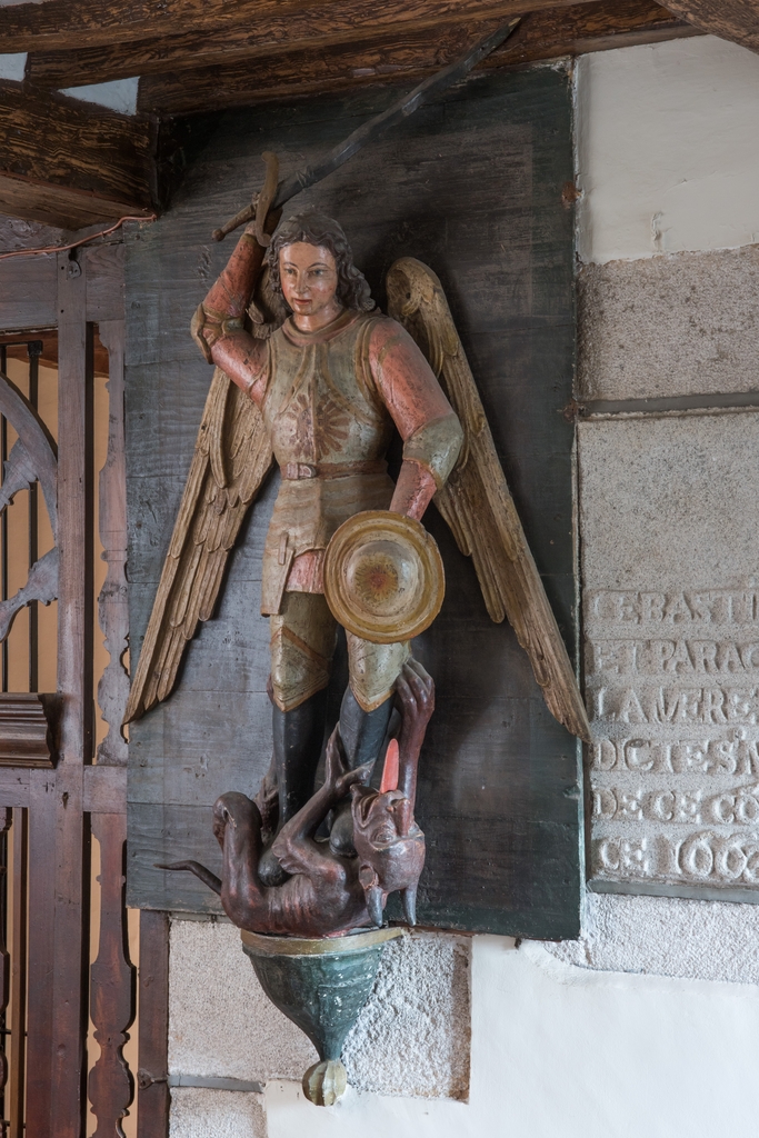 Corps de logis. Statue de saint Michel terrassant le dragon, bois polychrome, 17e siècle (inscrit au titre objet)Immatriculation