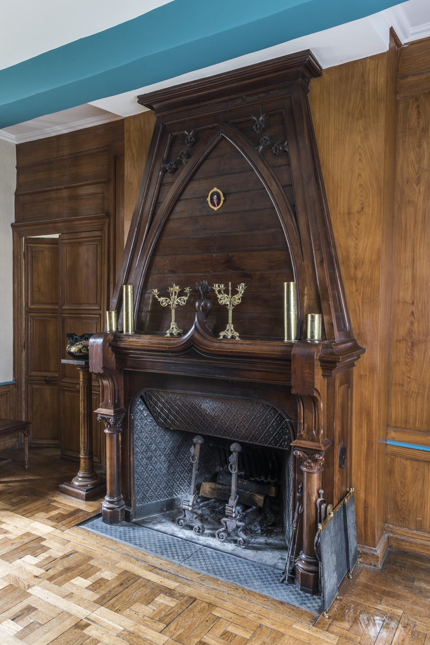 Salle à manger. Cheminée néo-gotiqueImmatriculation